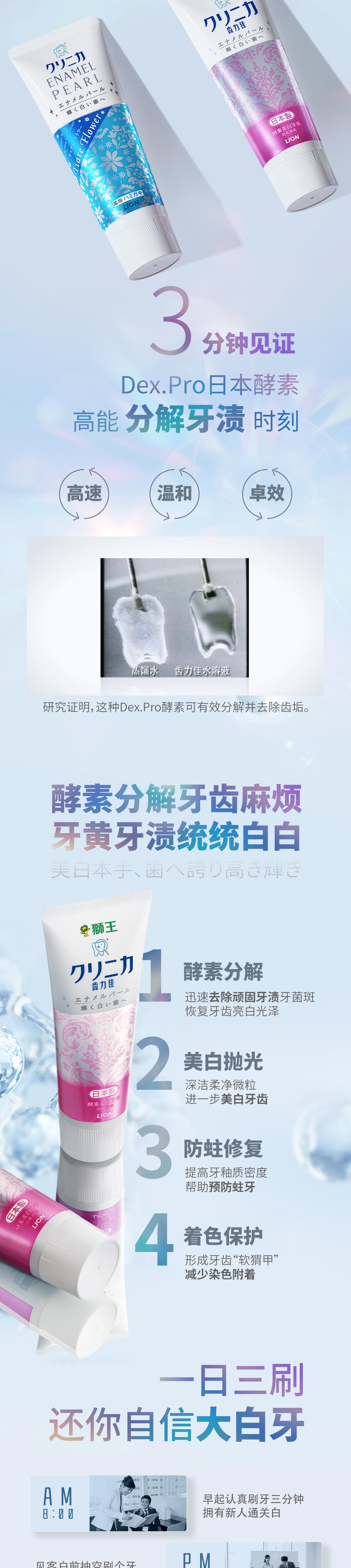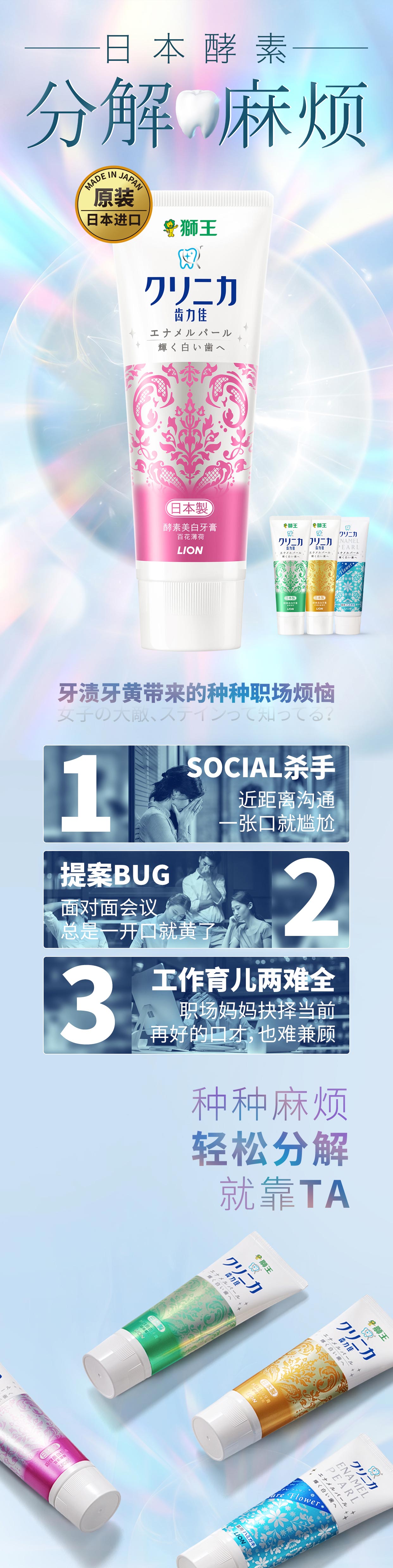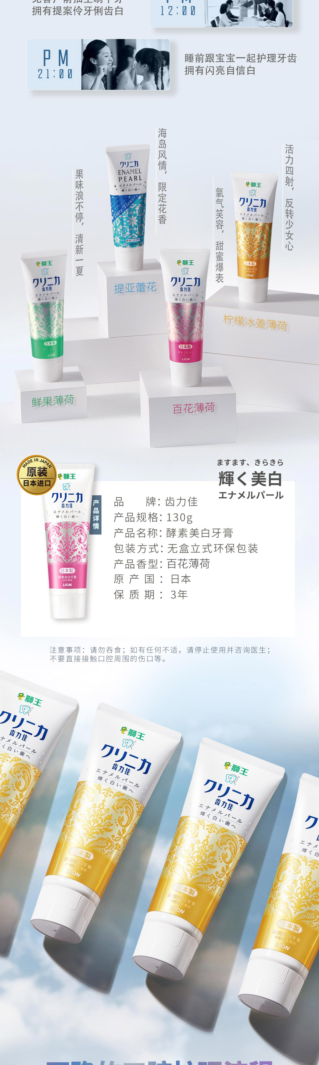 狮王(Lion)酵素美白牙膏130g(百花薄荷)进口酵素(明星同款)日本进口 去牙渍