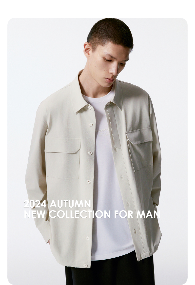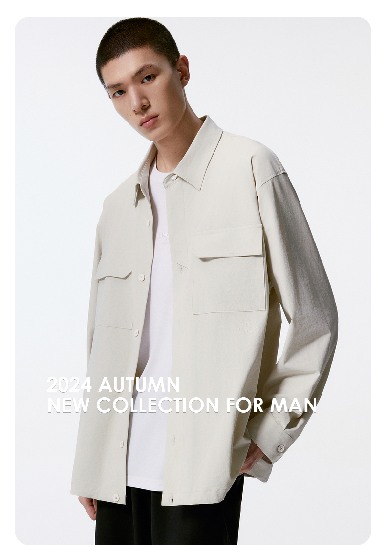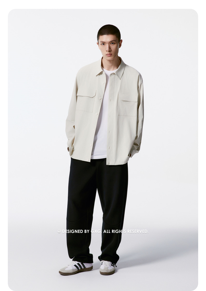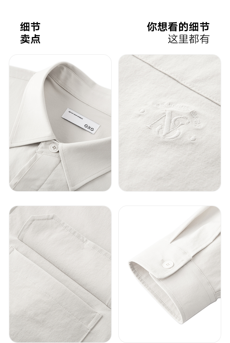 GXG男装 米白色宽松时尚翻领长袖衬衫外套男 秋热卖G24X033029