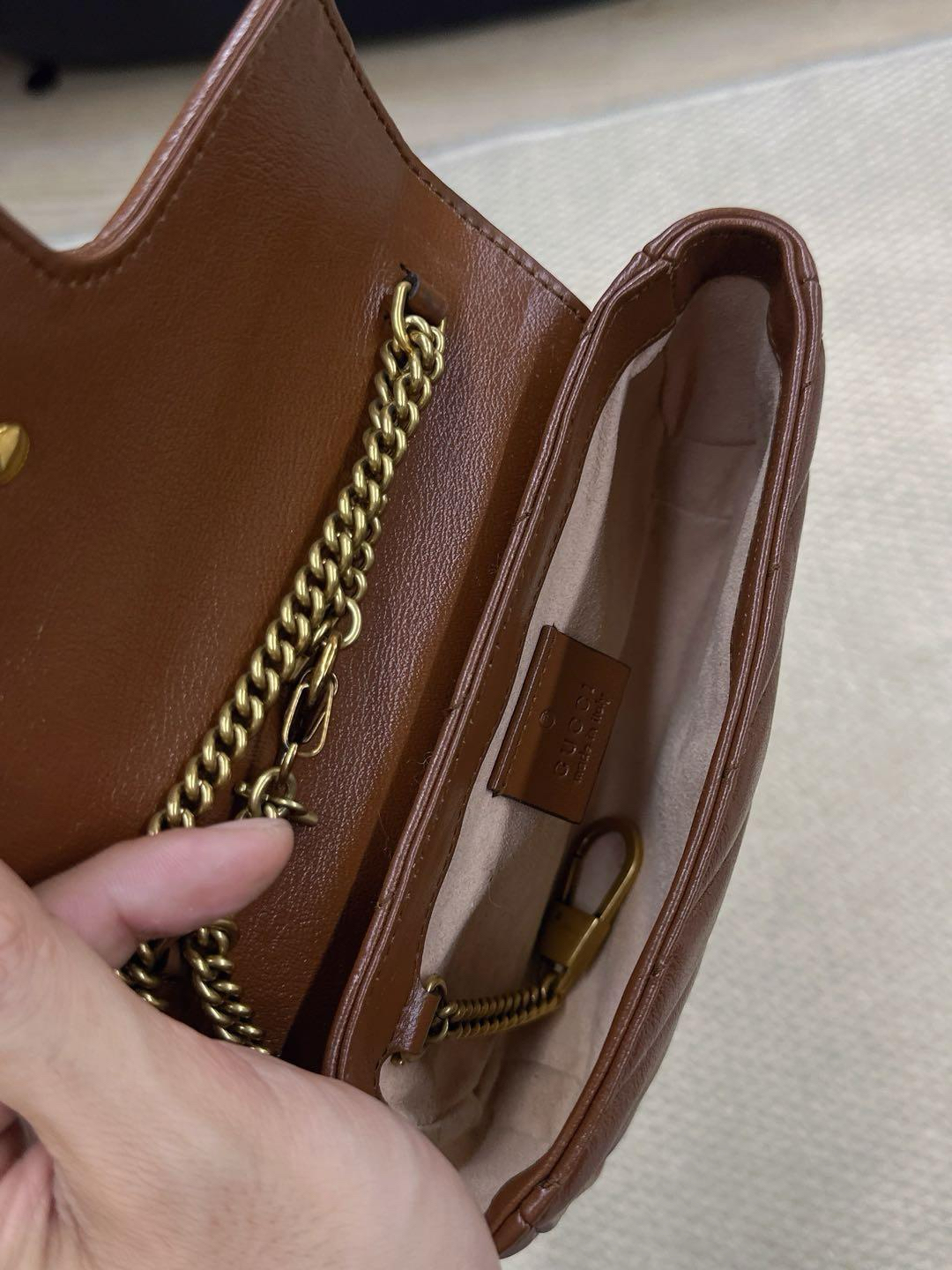 【商品详情】正品二手 Gucci mini 棕色 牛皮 双g 马蒙 链条包🧀97新 16×10 配件:大全套、盒子、小票、说明书、防尘袋、链带 钥匙扣。内里轻微使用感 夏日绝美小包