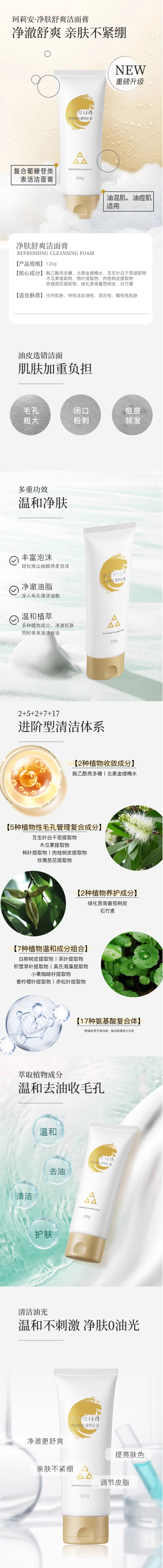 【203元会员福利】珂莉安洁面膏120g 氨基酸洁面 泡泡绵密