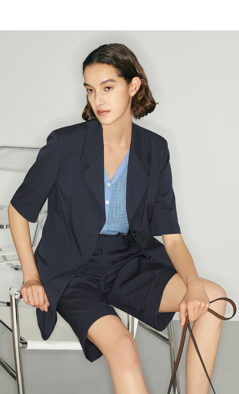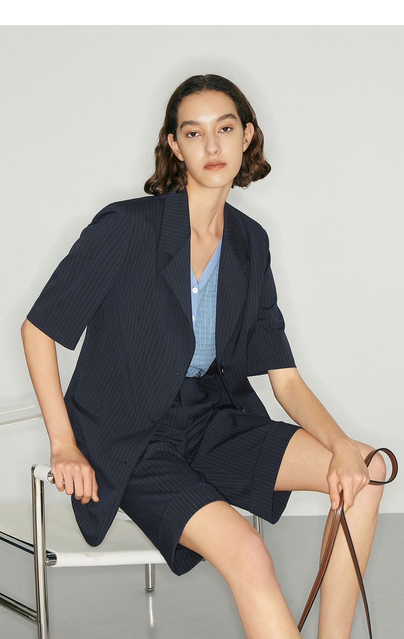 【商场同款】麦檬夏条纹单排扣休闲中西装5C5212471