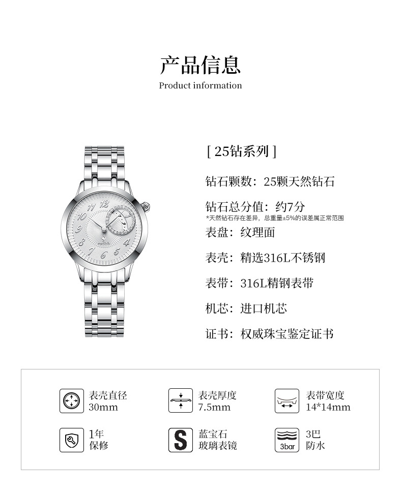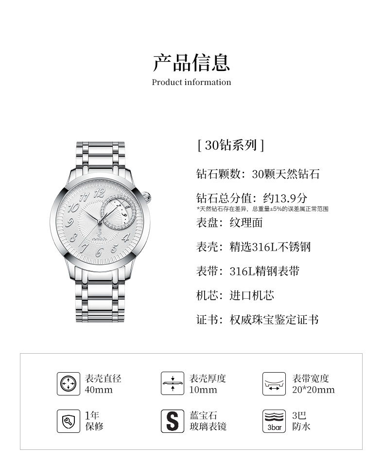 【ROROLOVE】情侣Lover系列 天然钻石腕表 精钢表带情侣款钻石手表进口机芯送礼(30/25颗钻石)