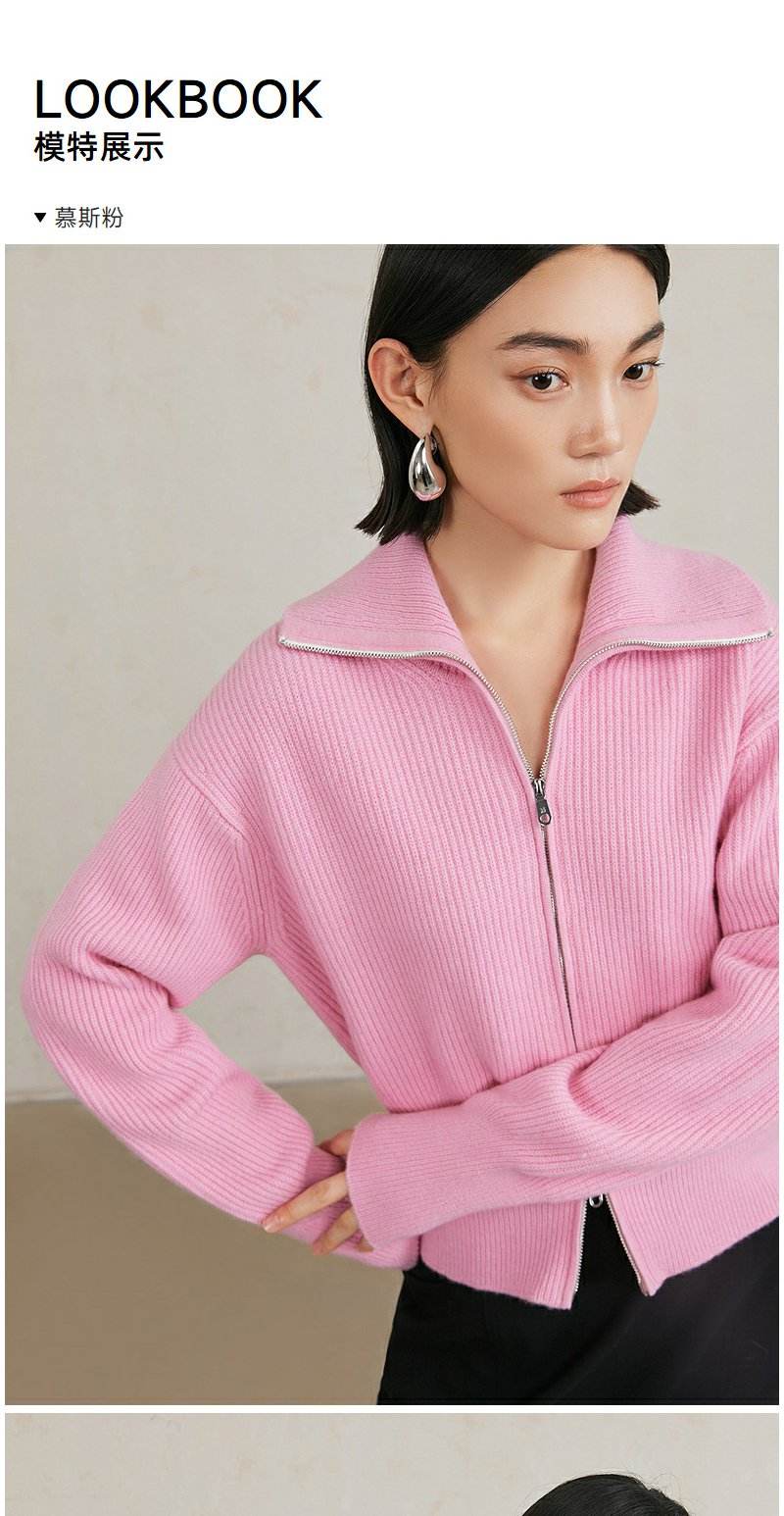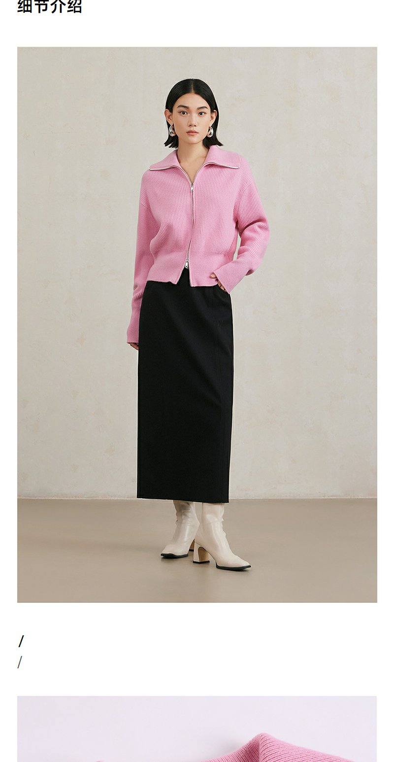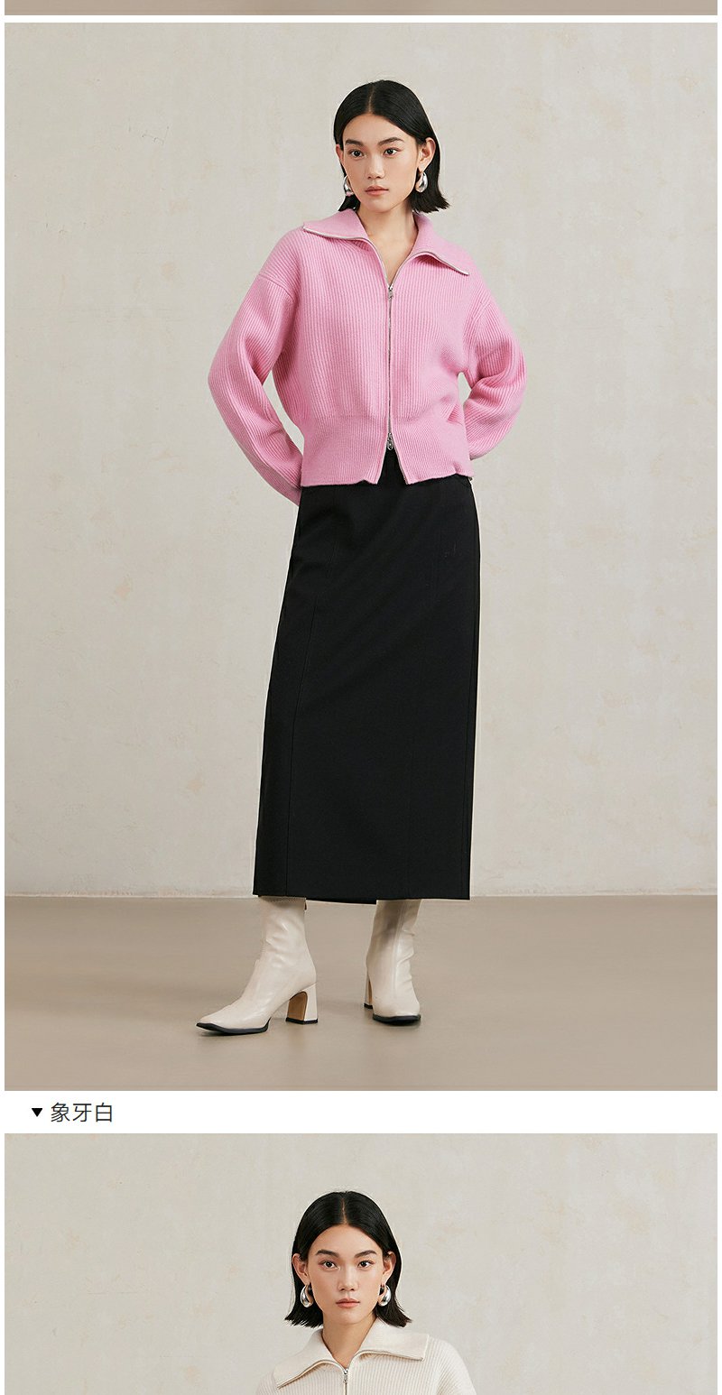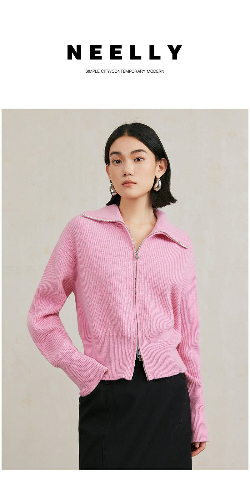 NEELLY纳俪商场同款冬新款绵羊毛拉链翻领针织开衫女软糯显白上衣N25104A04531