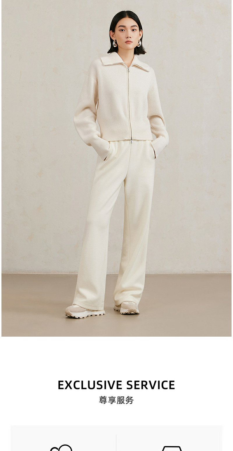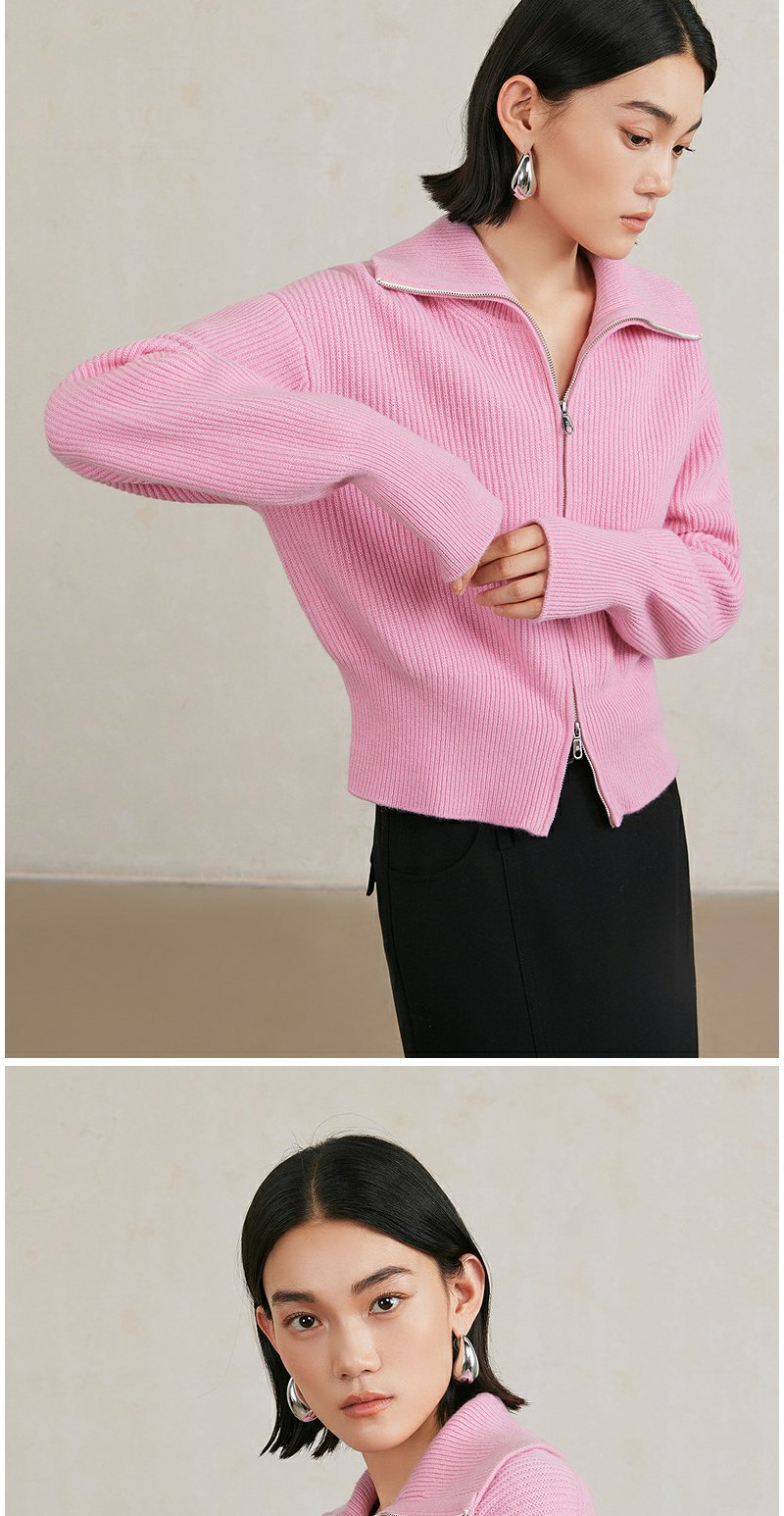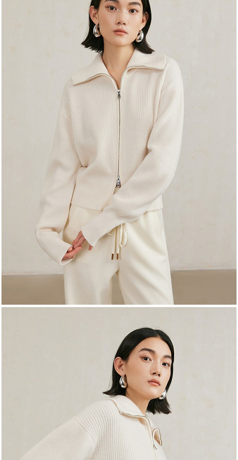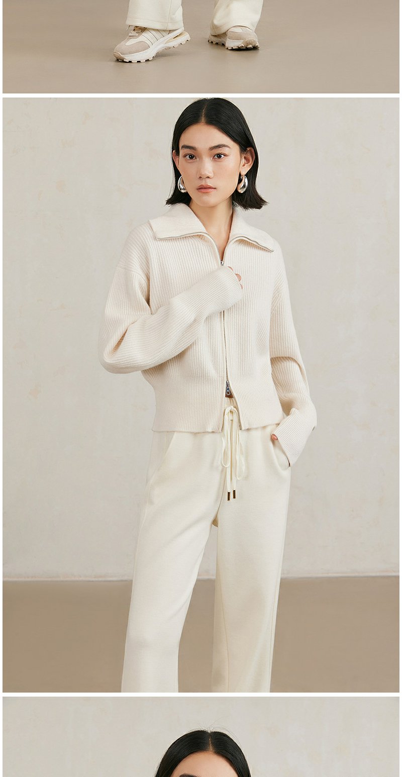 NEELLY纳俪商场同款冬新款绵羊毛拉链翻领针织开衫女软糯显白上衣N25104A04531