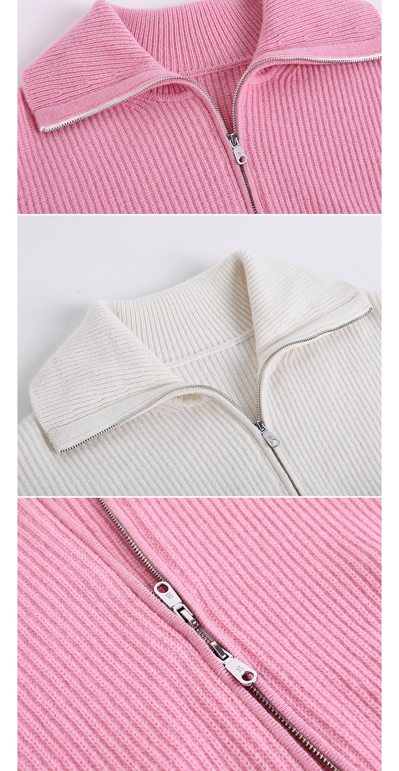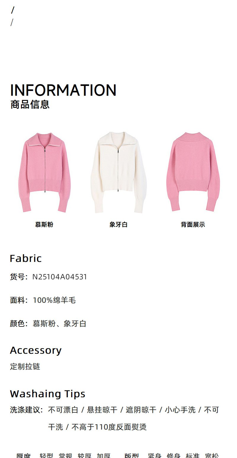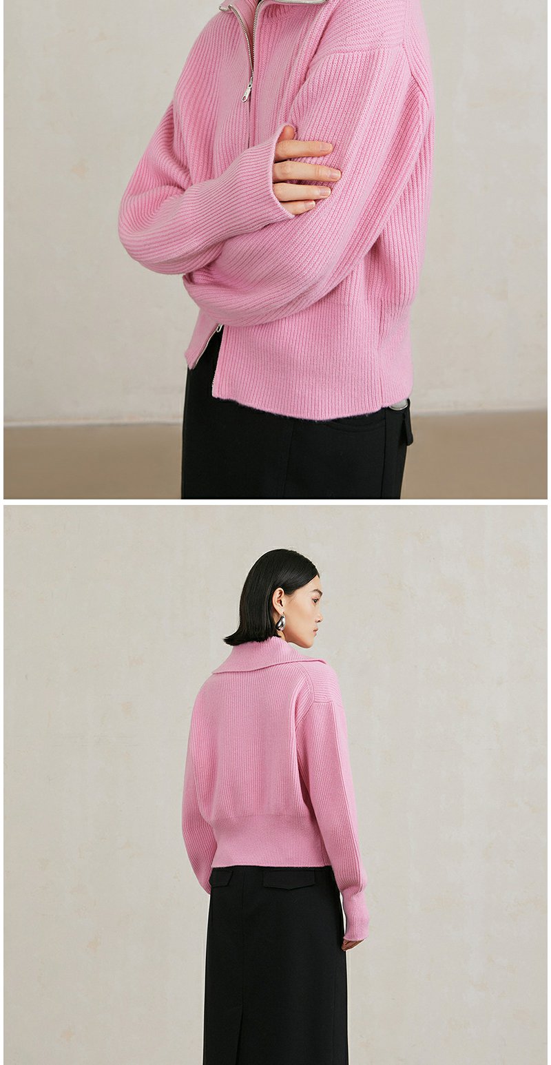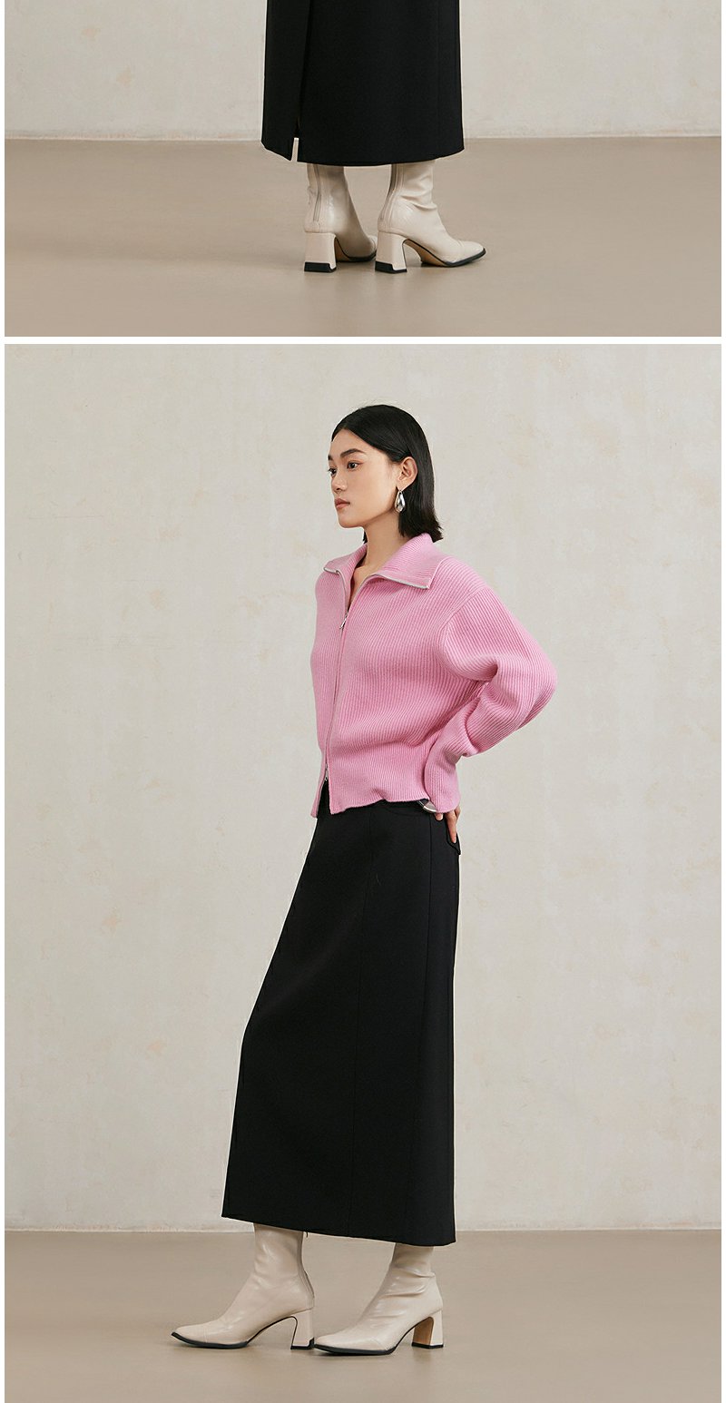 NEELLY纳俪商场同款冬新款绵羊毛拉链翻领针织开衫女软糯显白上衣N25104A04531
