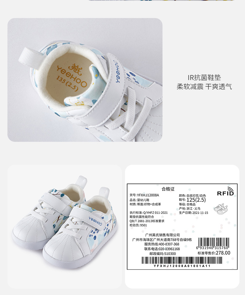 英氏男女宝白色贝壳头熊猫鞋学步鞋春秋YFXHJ12007A YFXHJ12008A