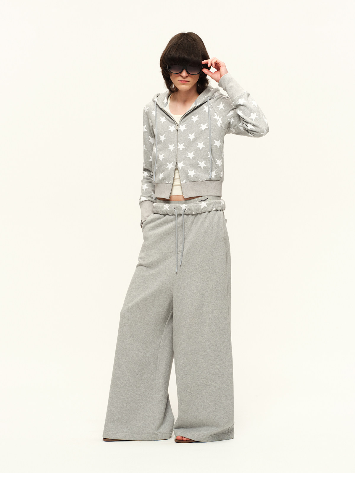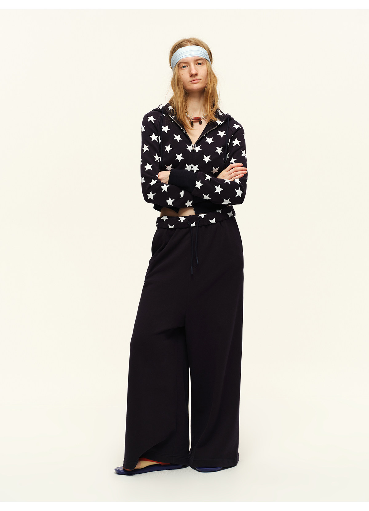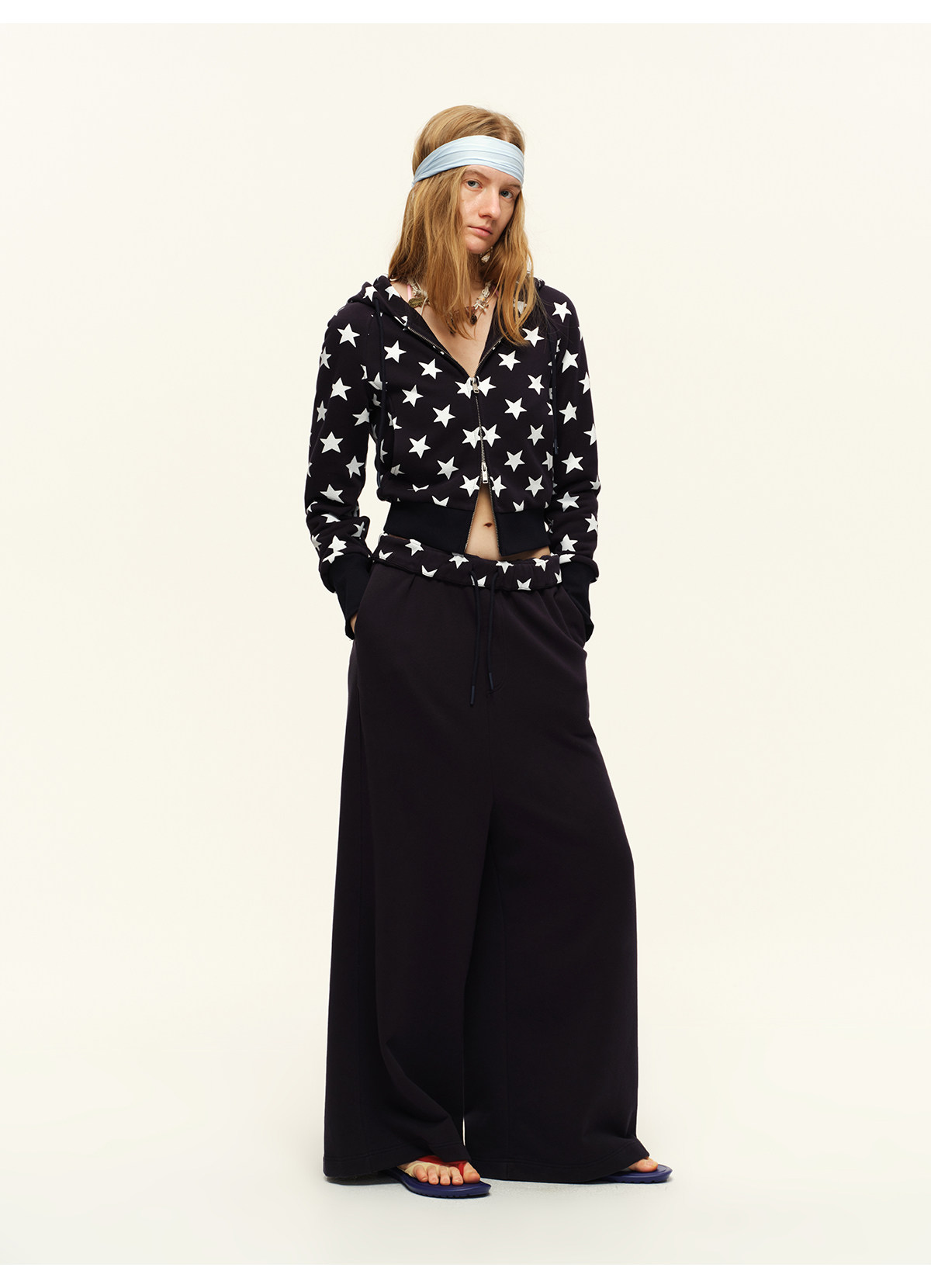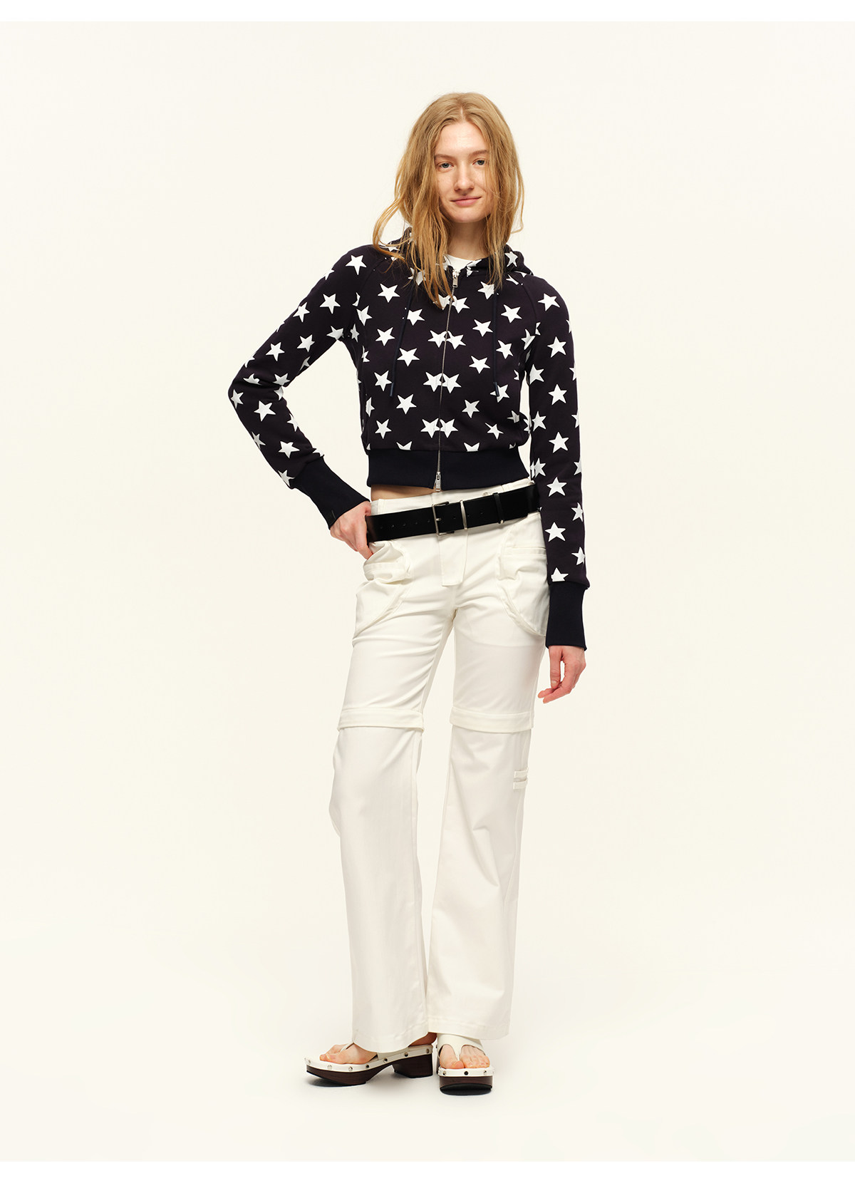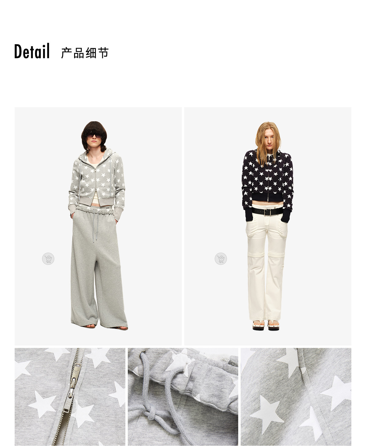 出逃赤岗西/C26SSS021/双拉链星星印花全棉连帽卫衣