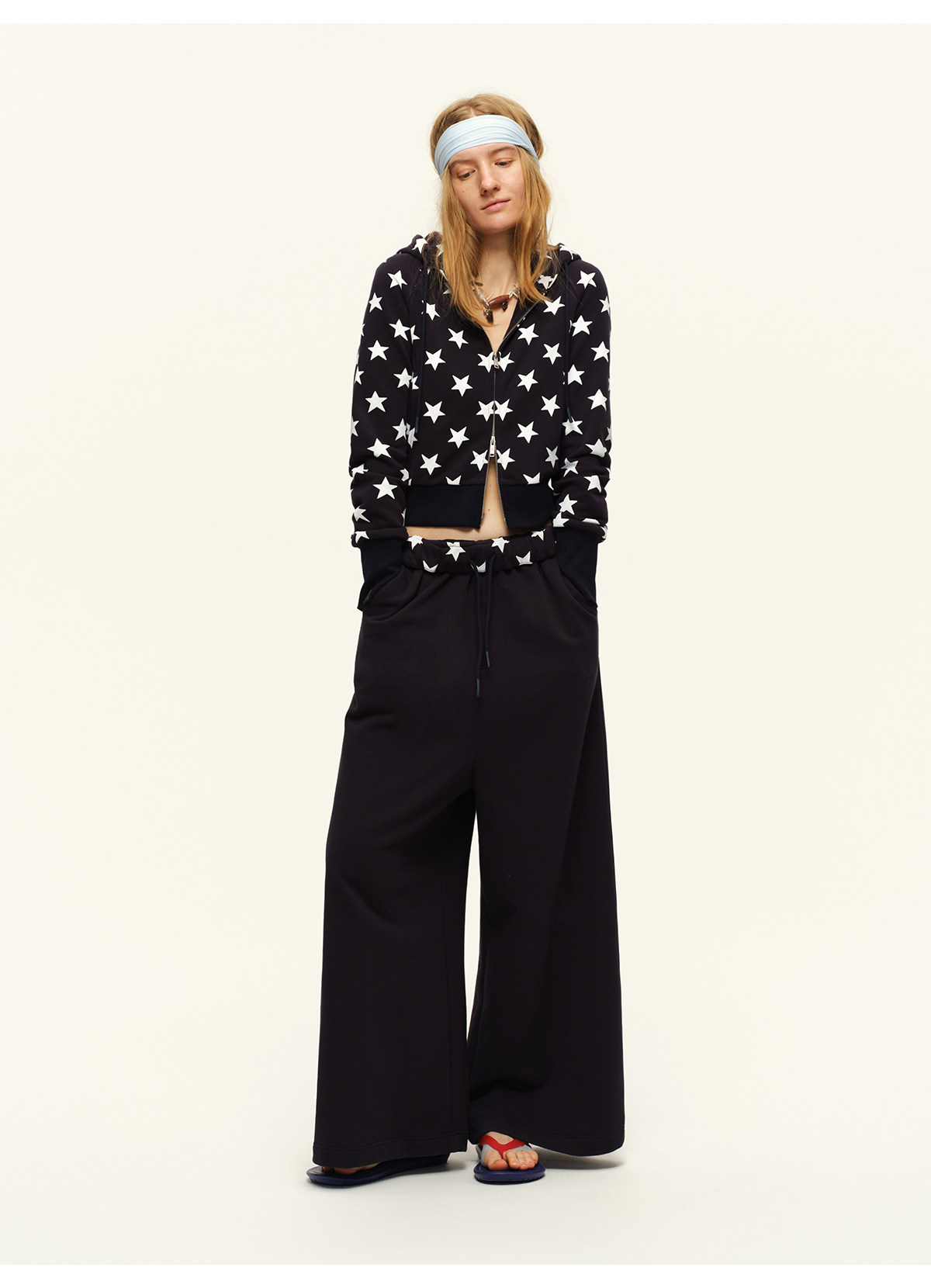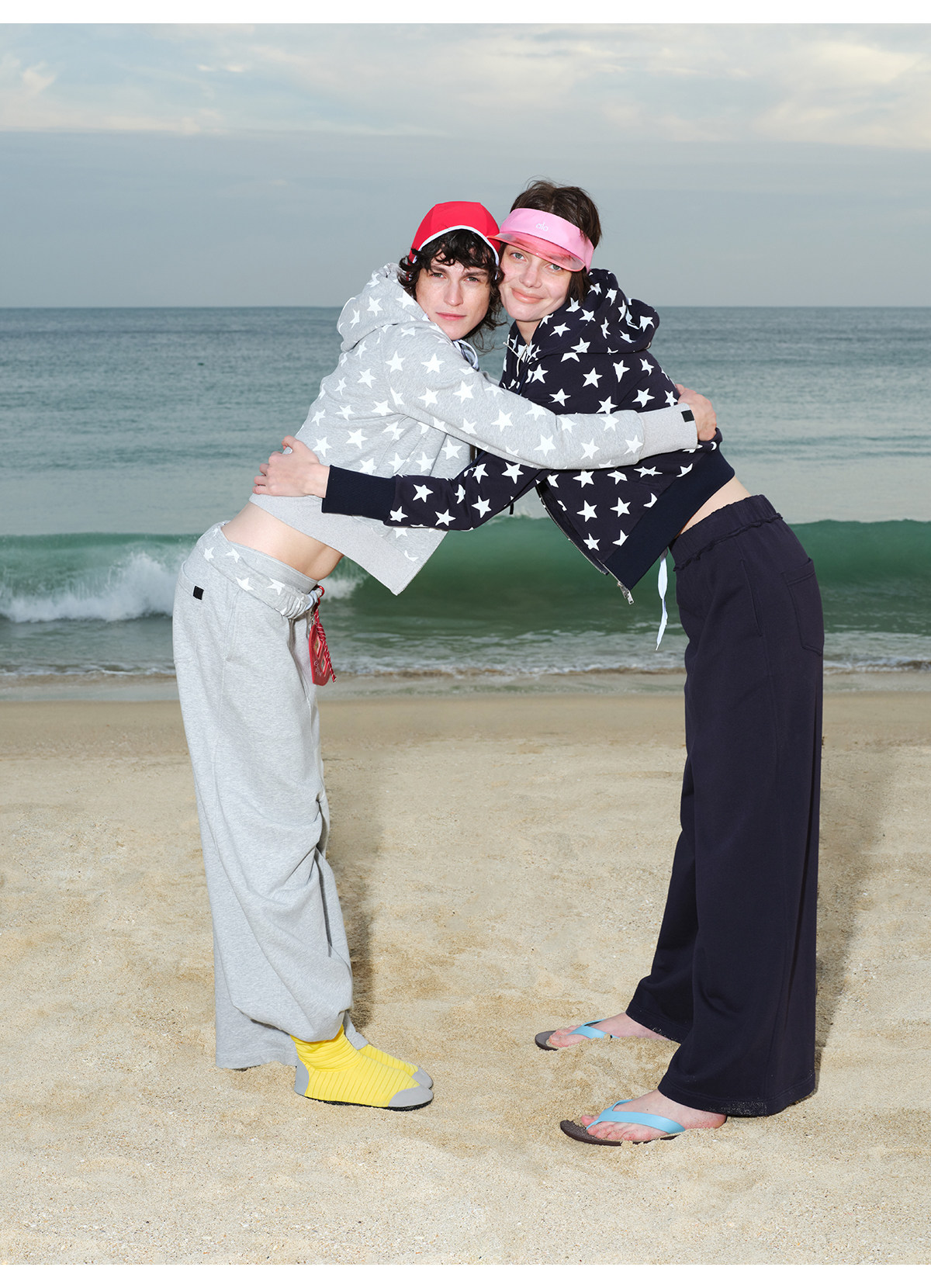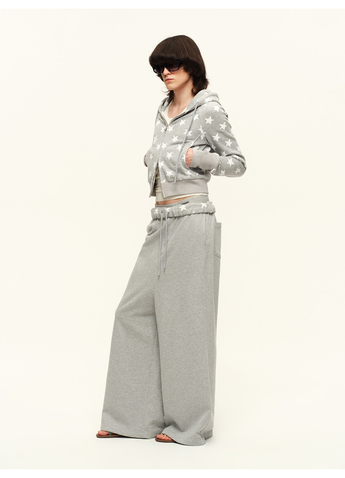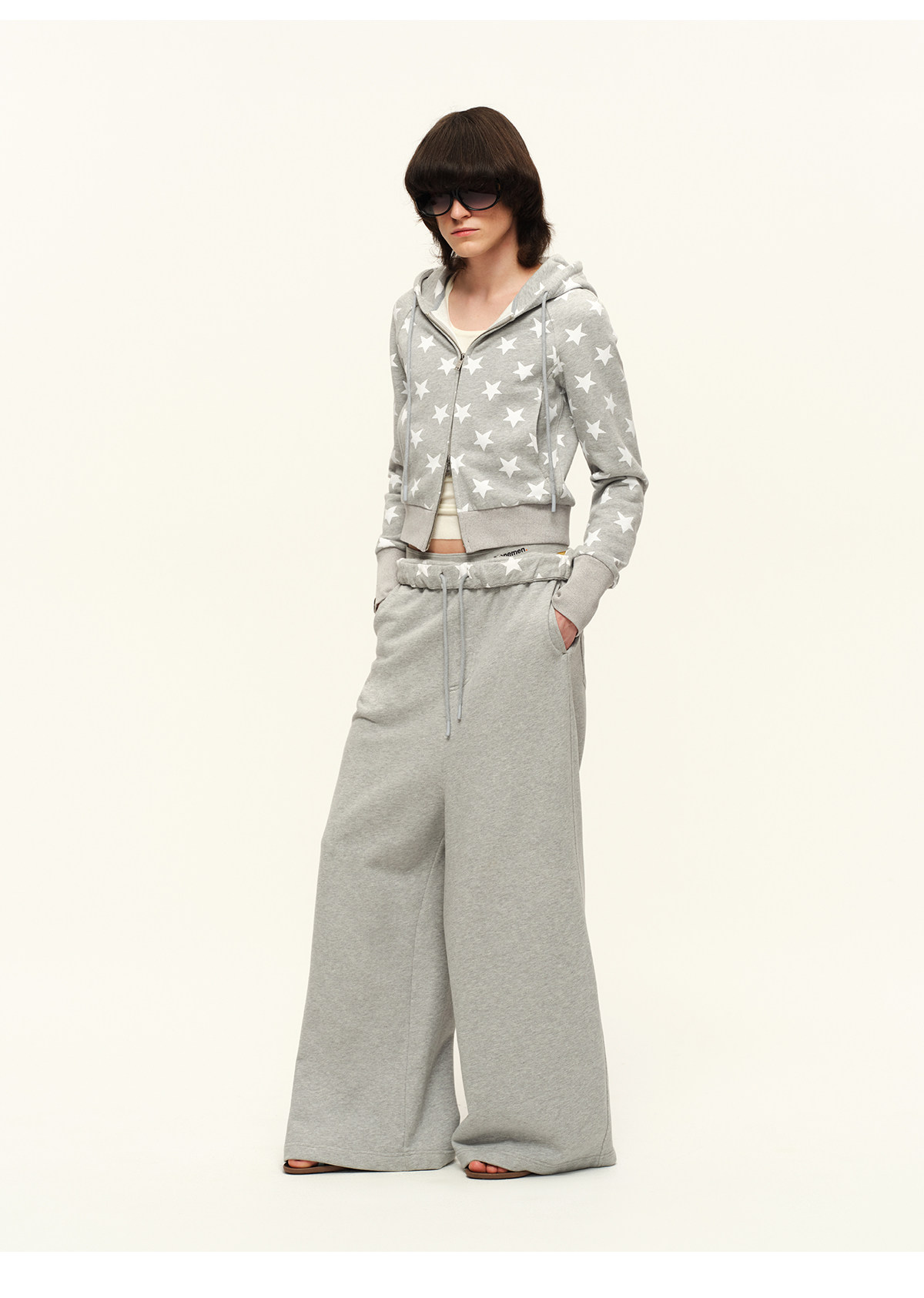 出逃赤岗西/C26SSS021/双拉链星星印花全棉连帽卫衣