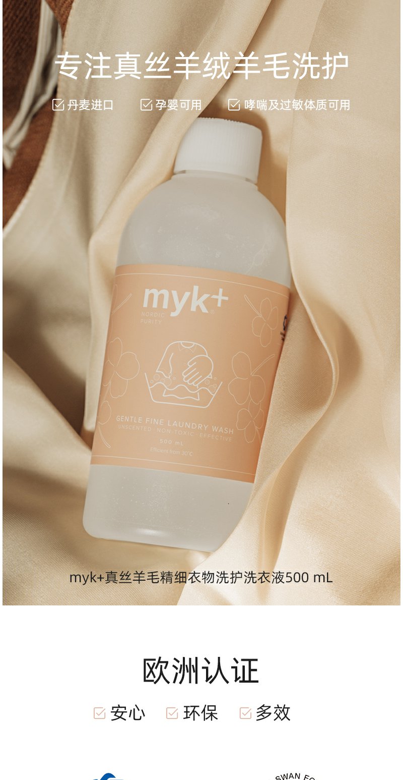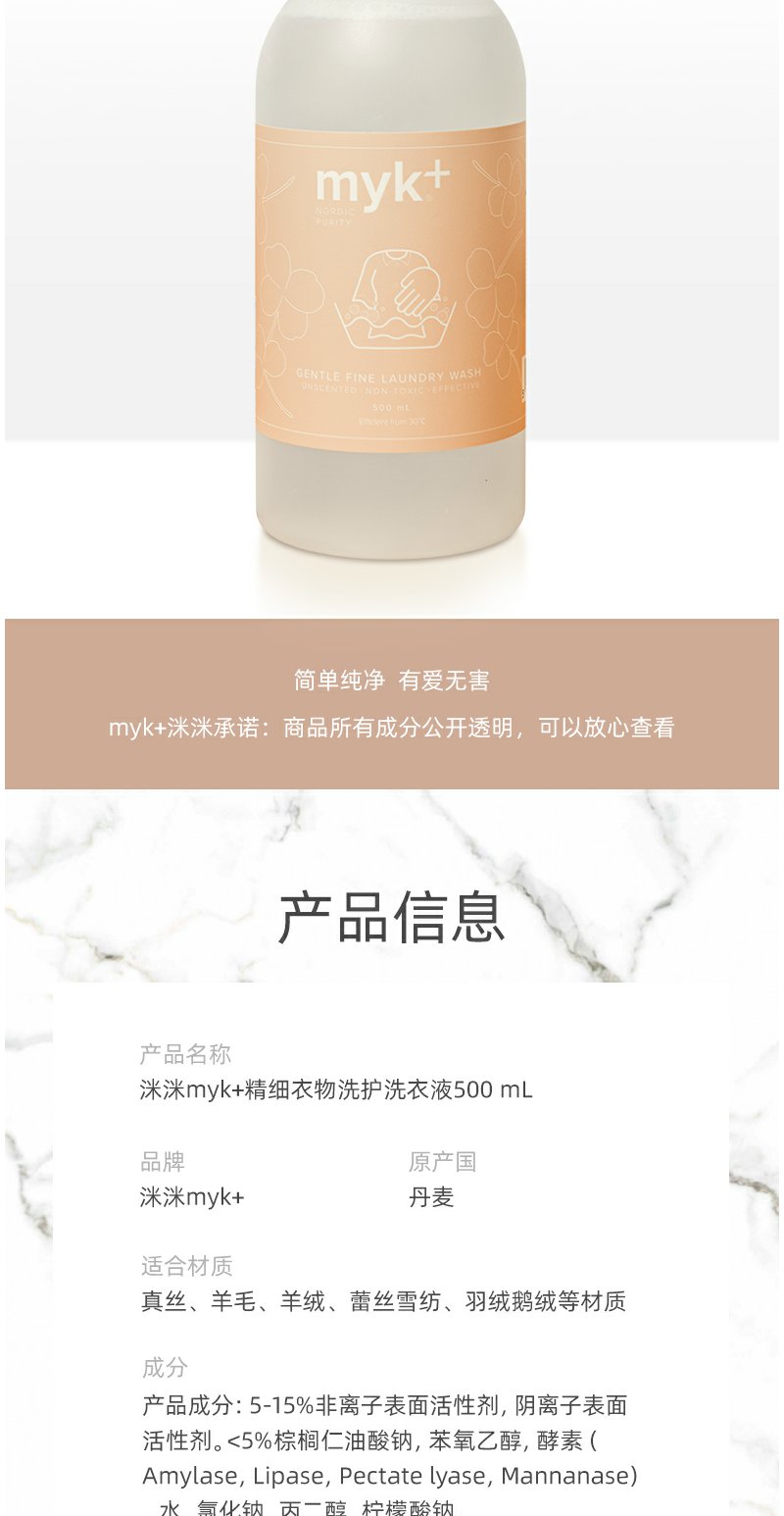 洣洣myk+进口真丝羊毛洗衣液内衣衣物羊绒桑蚕丝专用防缩水洗涤剂