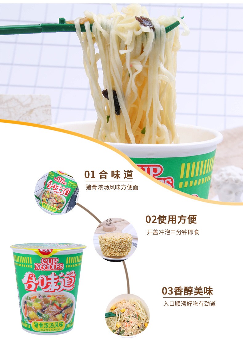 日清方便面 合味道 猪骨浓汤风味 77g*12杯整箱装 桶装速食泡面