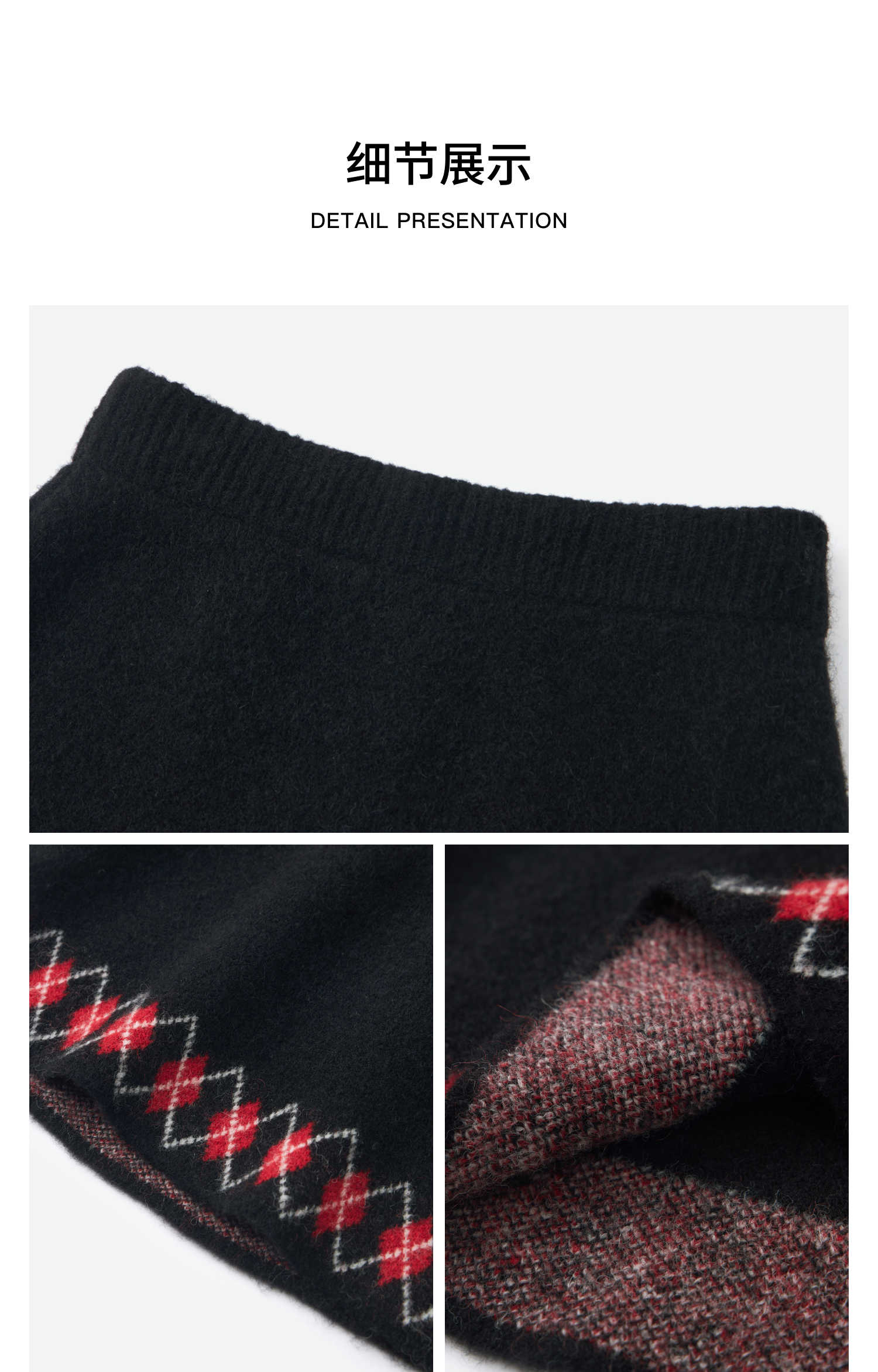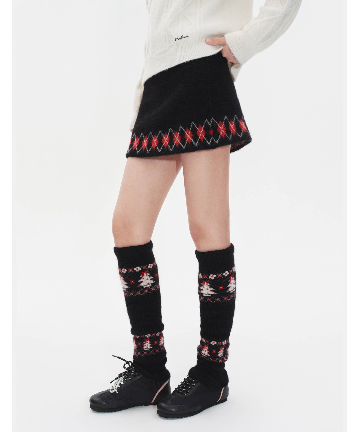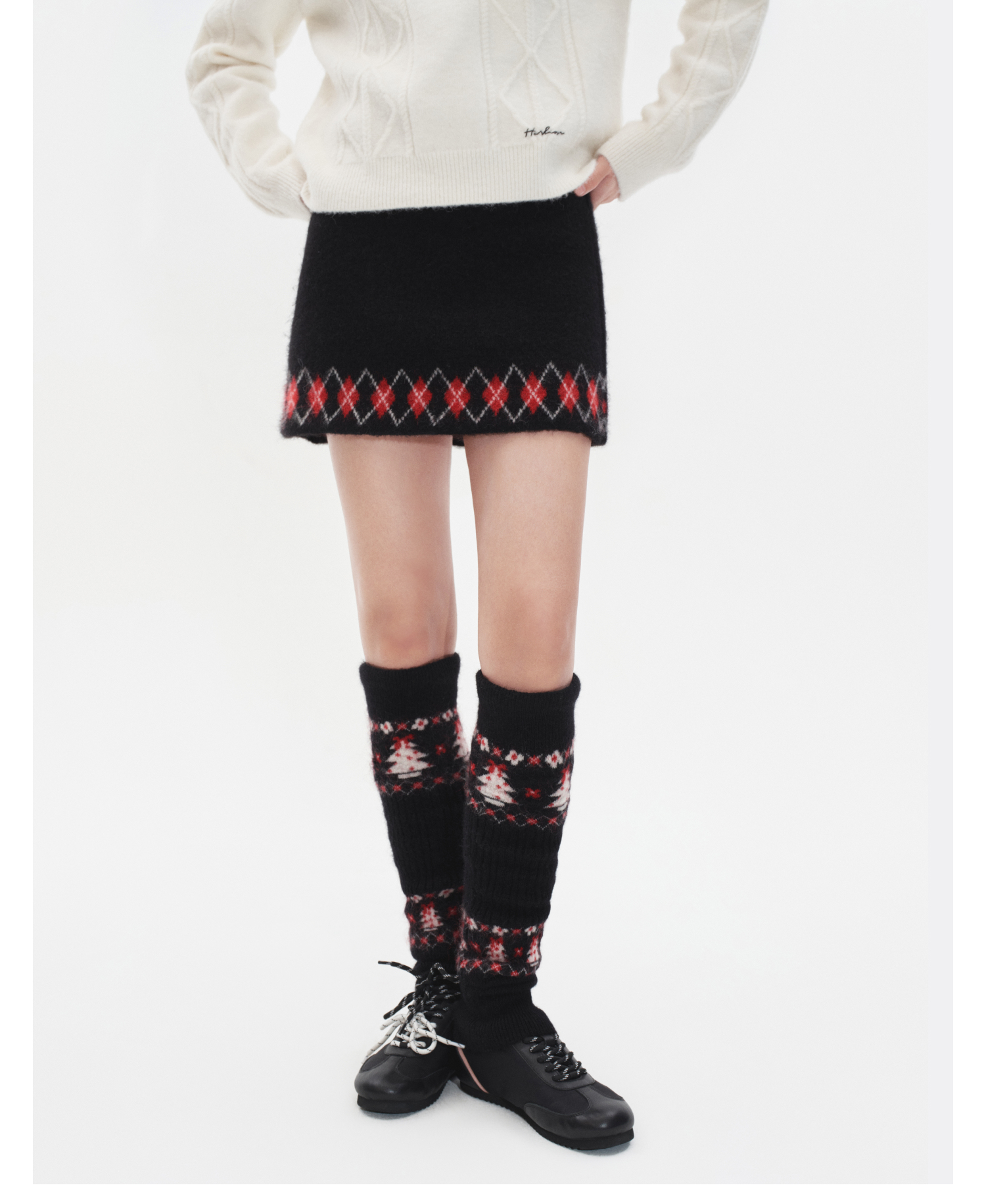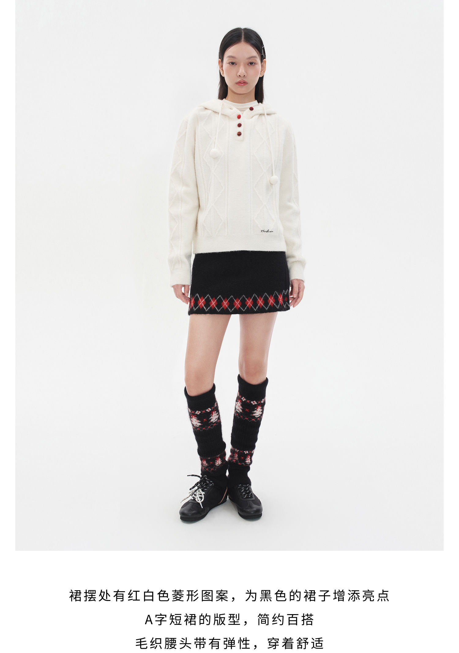 Herlian2025冬季新款撞色菱格纹装饰针织半裙