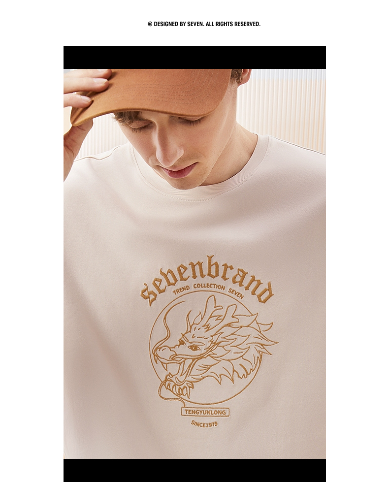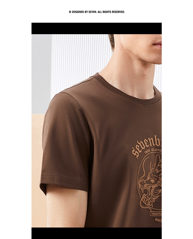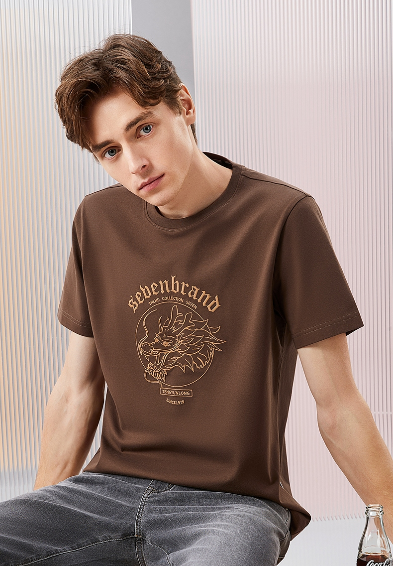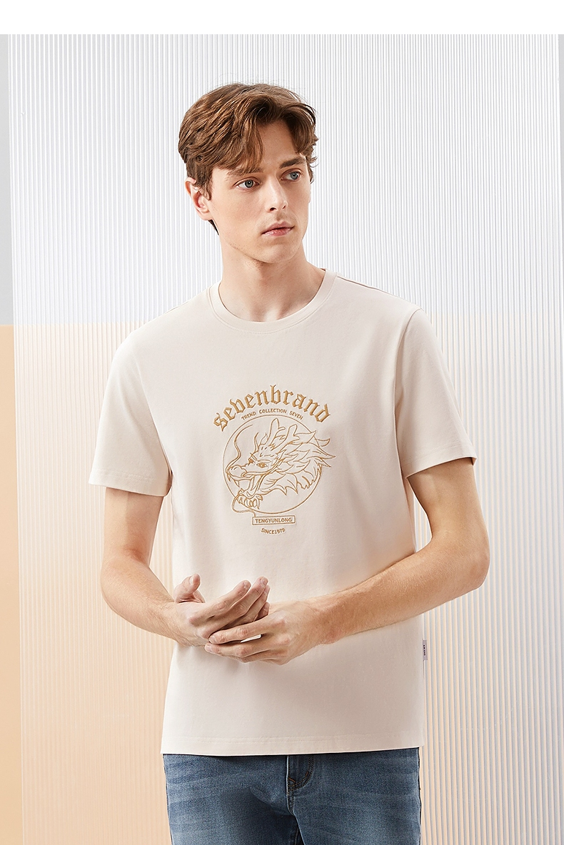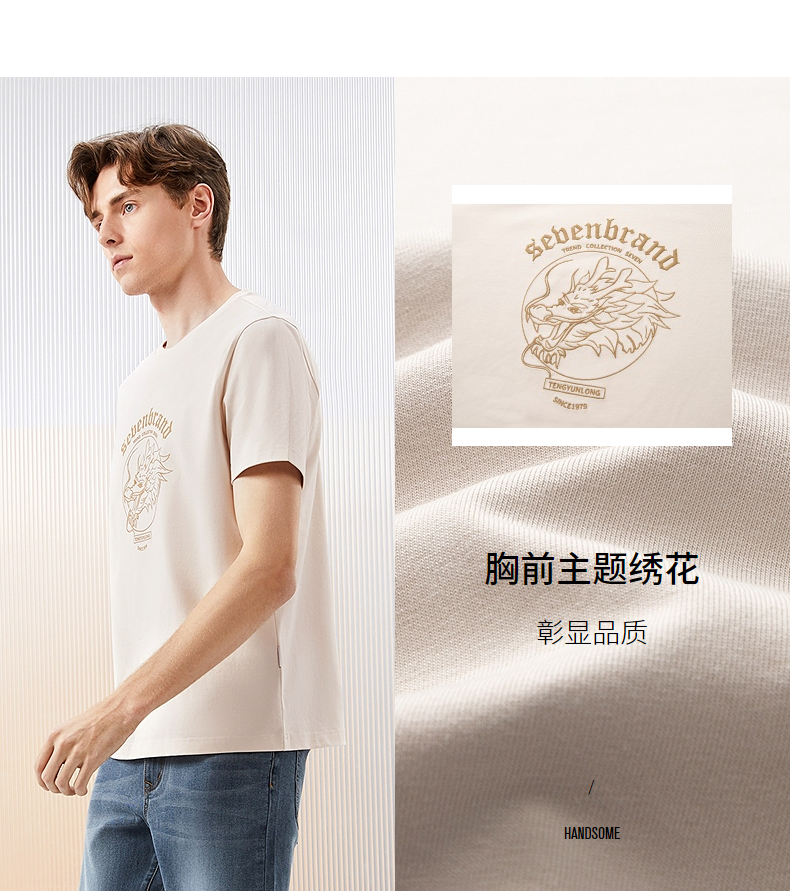 【凉感索罗纳】柒牌短袖T恤男夏季新款时尚龙纹绣花圆领休闲上衣 126T71960