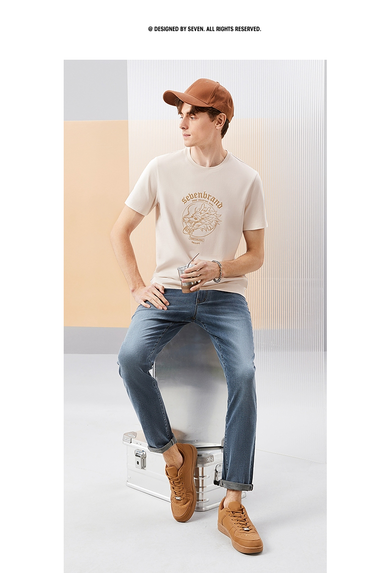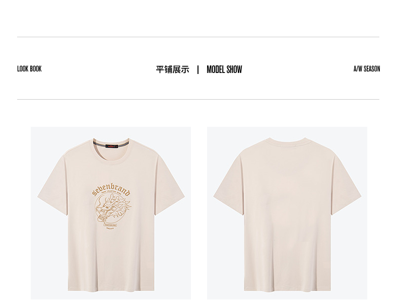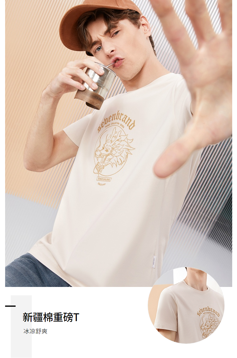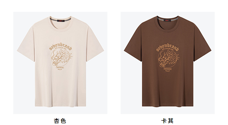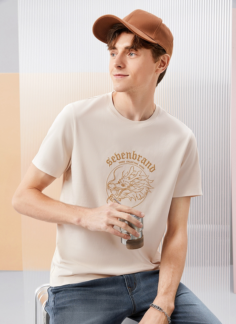 【凉感索罗纳】柒牌短袖T恤男夏季新款时尚龙纹绣花圆领休闲上衣 126T71960