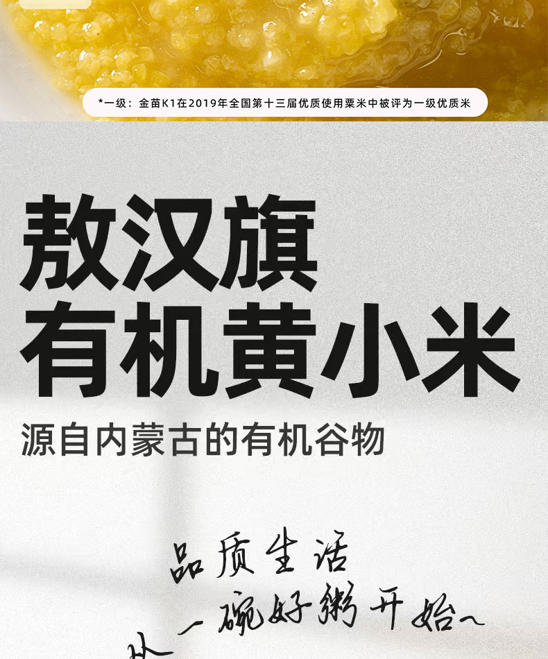 有机胚芽小米新米内蒙古特产黄小米瓶装450g