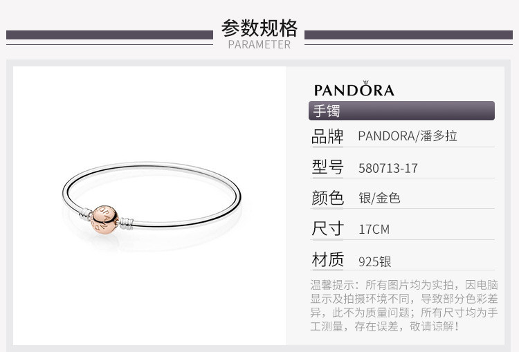 PANDORA/潘多拉 女士Rose系列925银链扣手镯手链基础链580713 银/金色