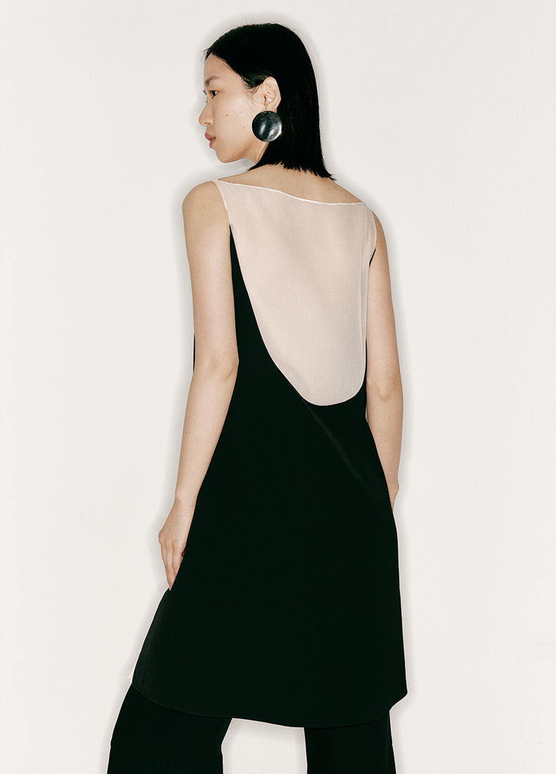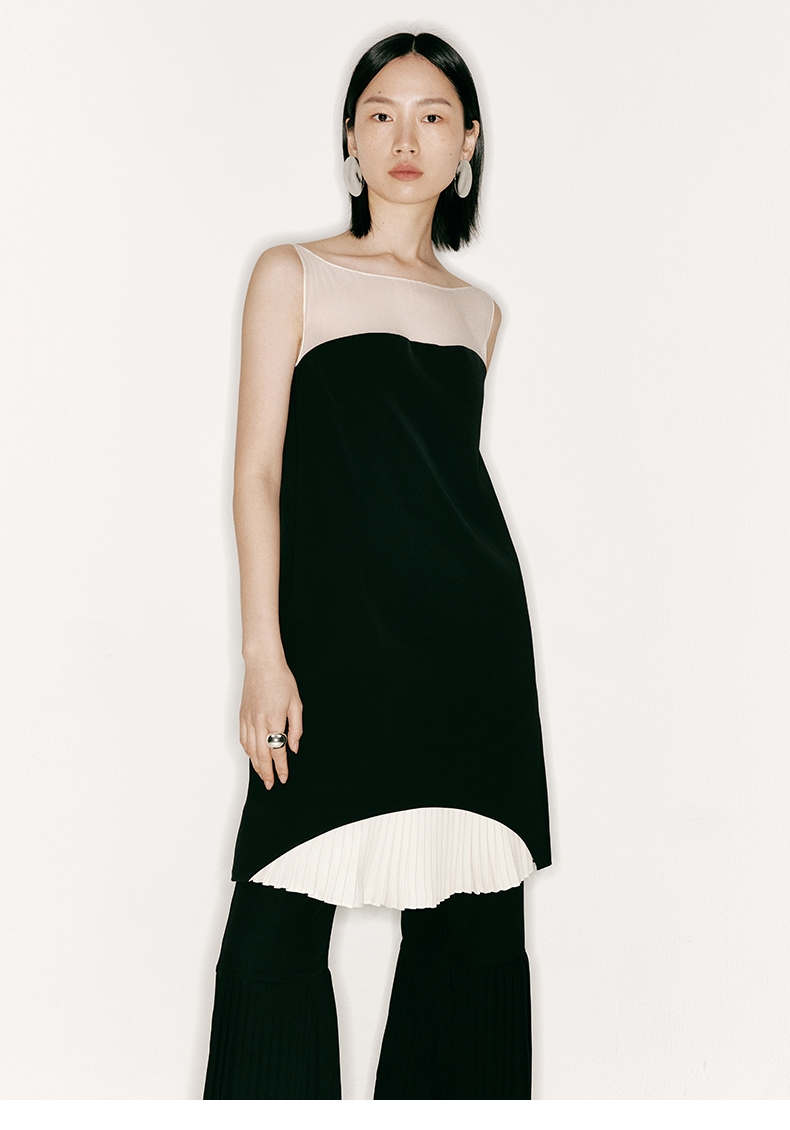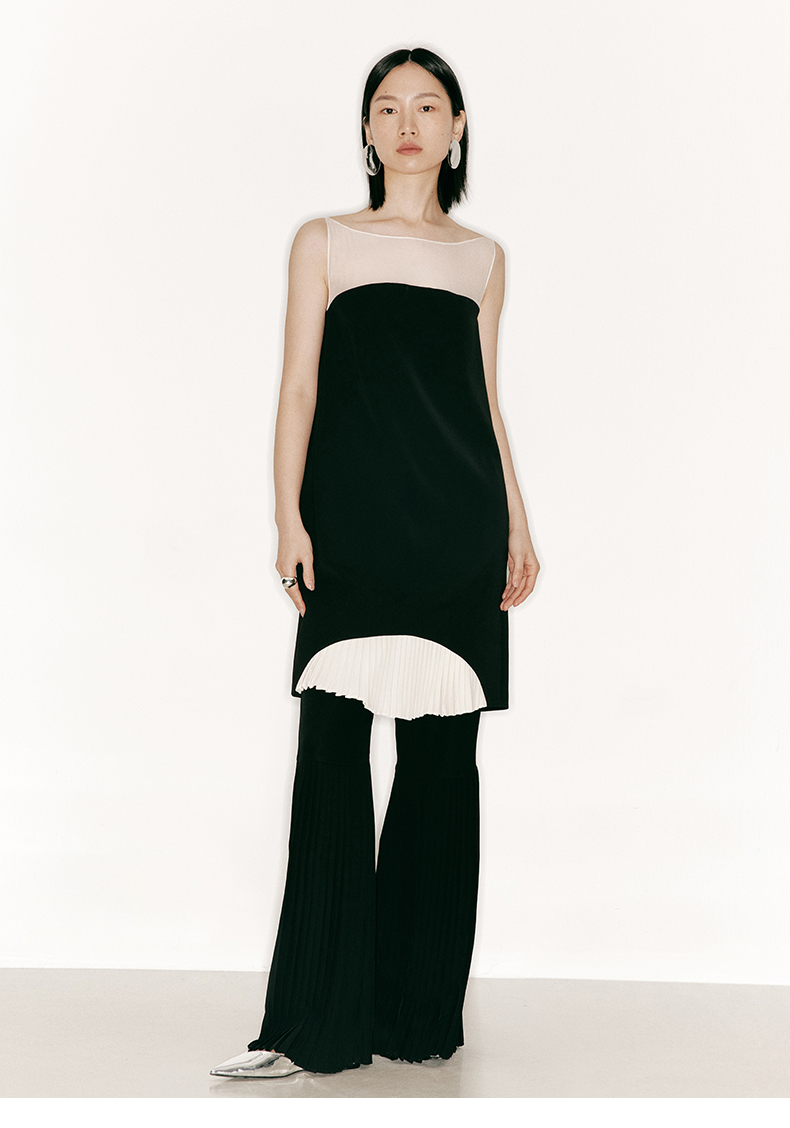 【月半湾】下摆百褶拼接后背U形薄纱连衣裙/23000022