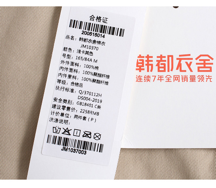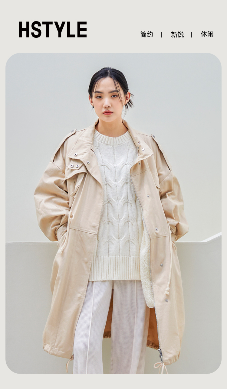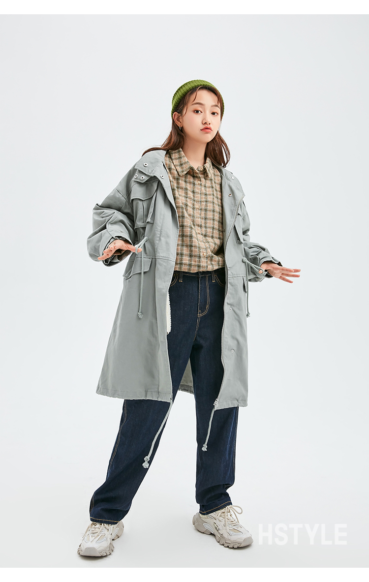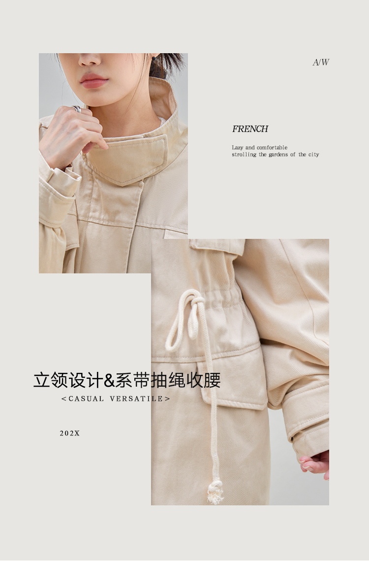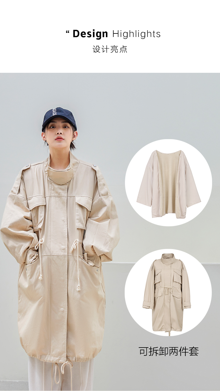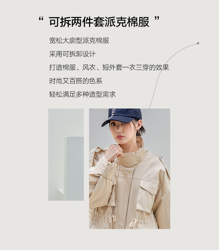 韩都衣舍派克服棉服2022新款秋装女装宽松ins潮可拆外套JM10370