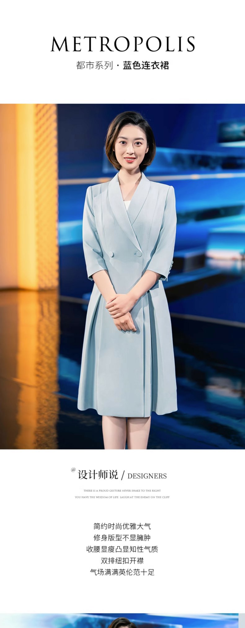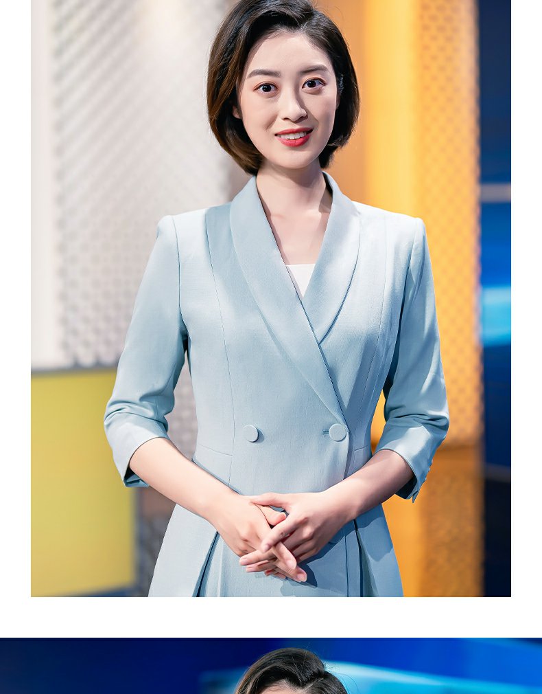 IWY/蓝色播音艺考生礼服女气质七分袖主持人演讲比赛正装Q963-L