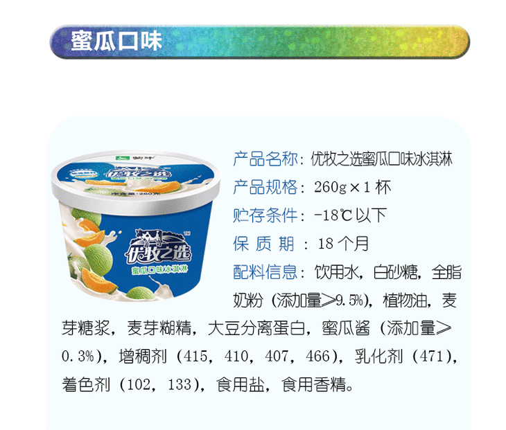 蒙牛优牧之选蜜瓜口味冰淇淋260g