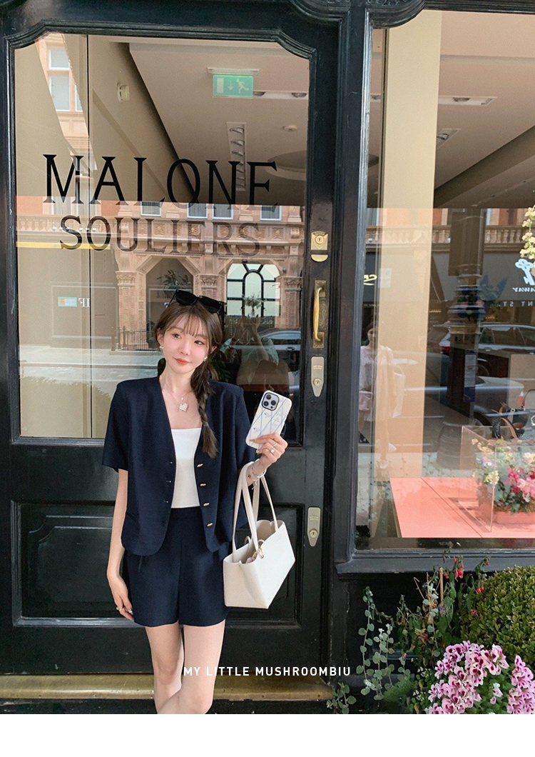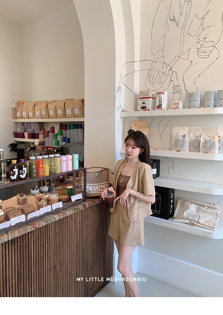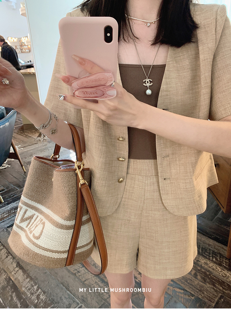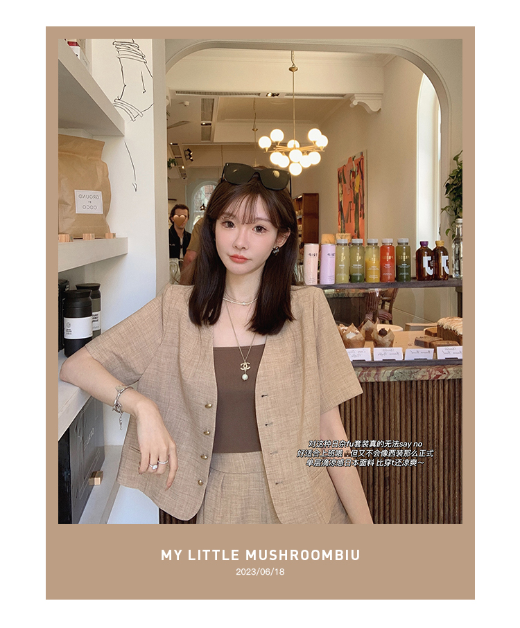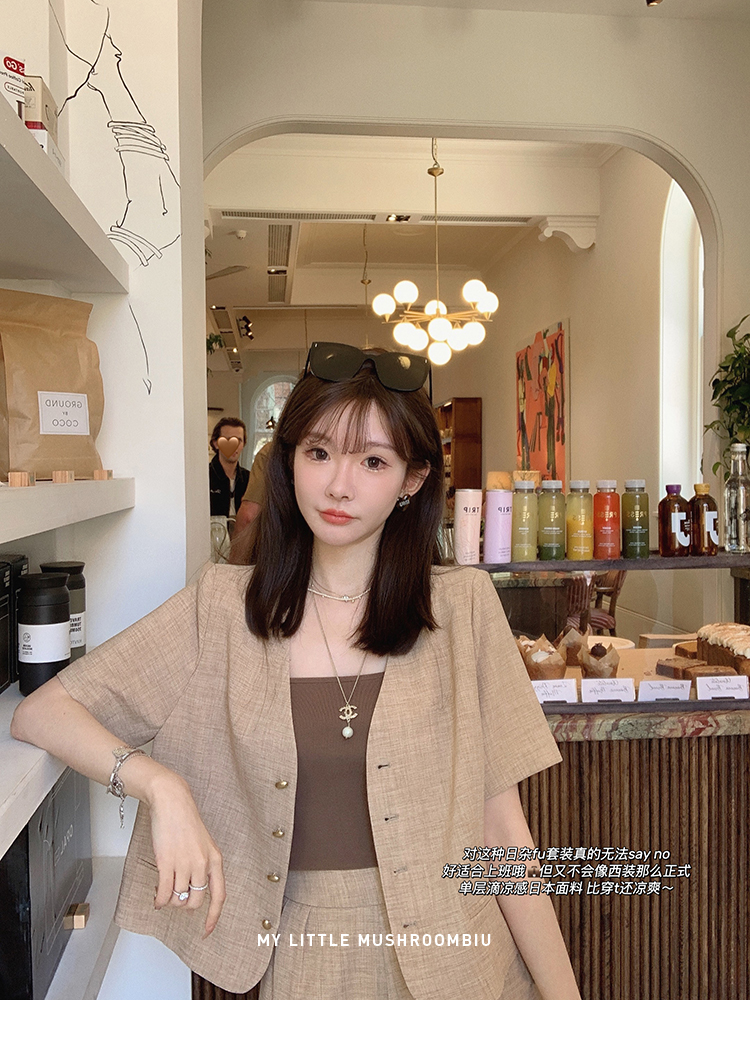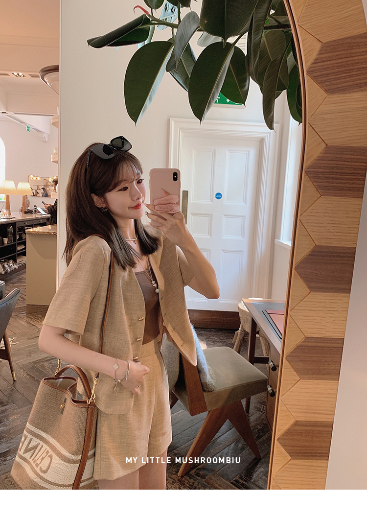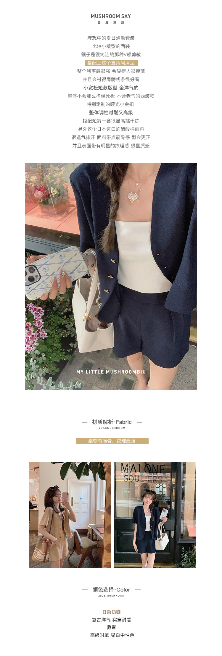 金蘑菇菇 和风旋律 /醋酸棉凉感 短袖西装+短裤通勤两件套