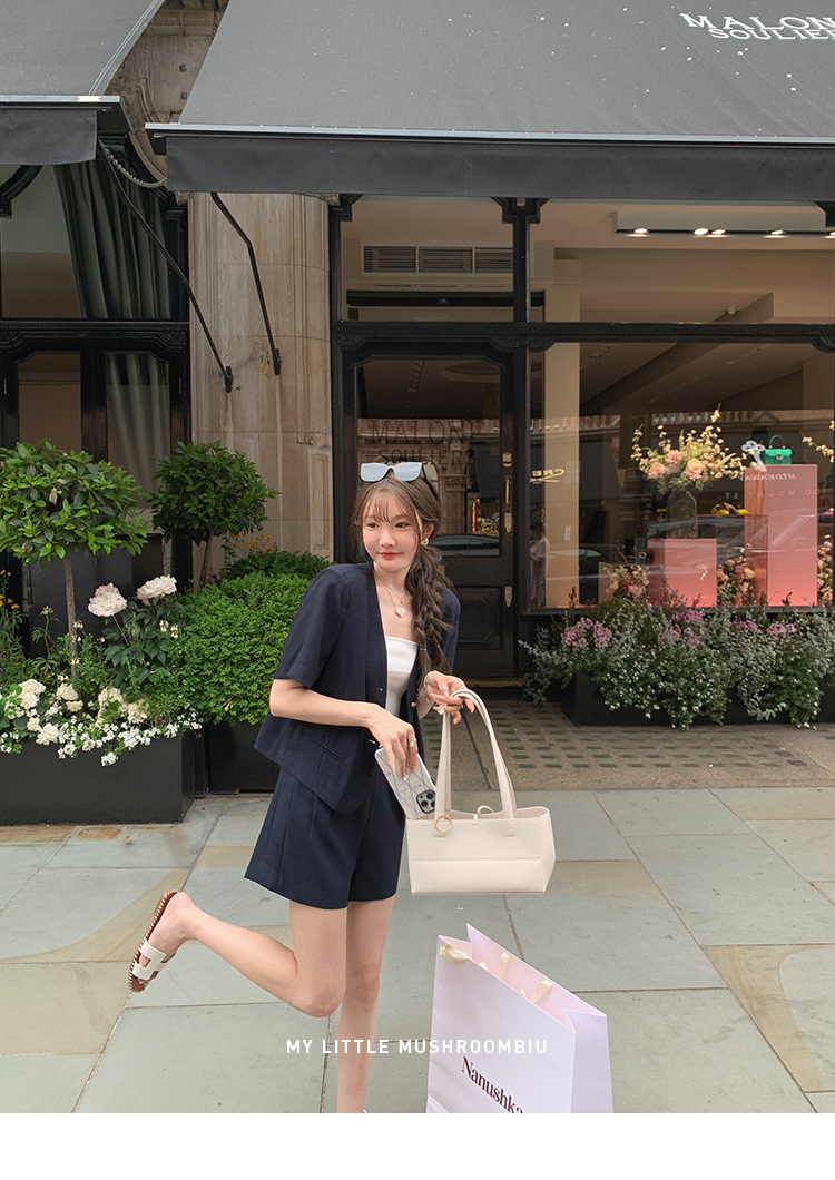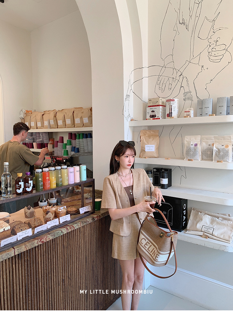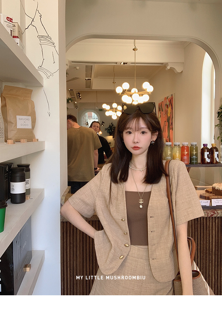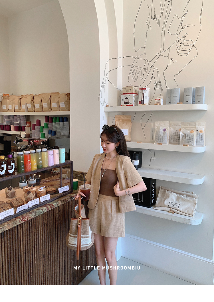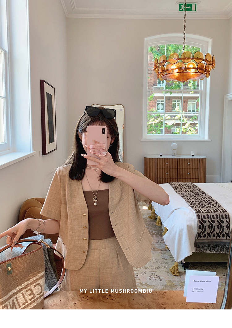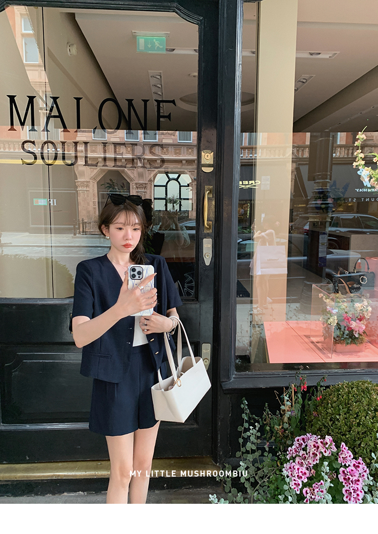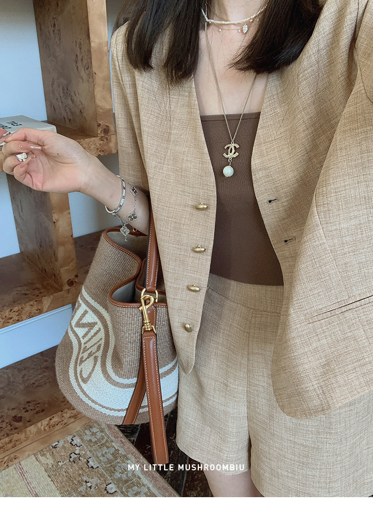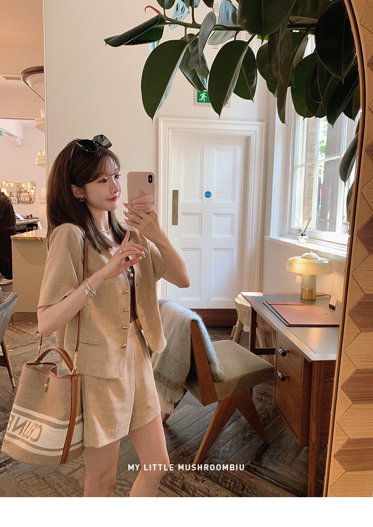 金蘑菇菇 和风旋律 /醋酸棉凉感 短袖西装+短裤通勤两件套