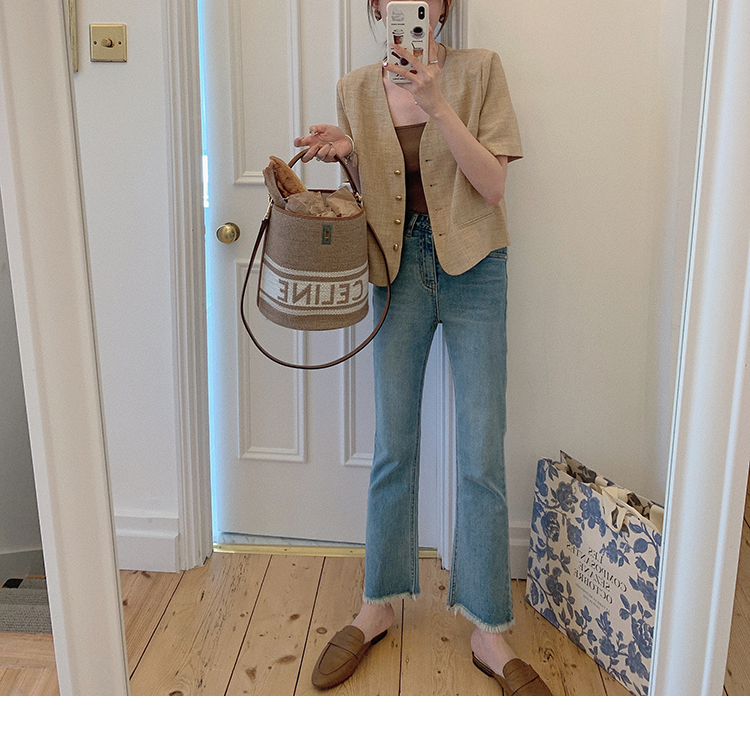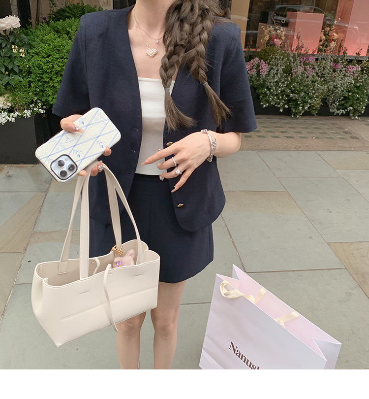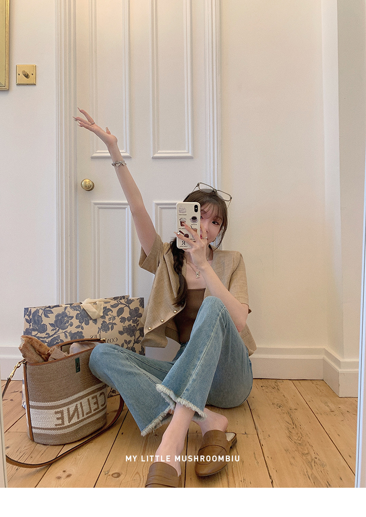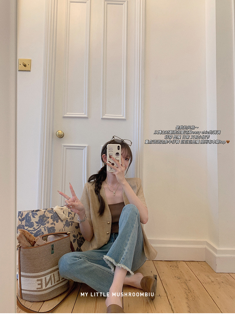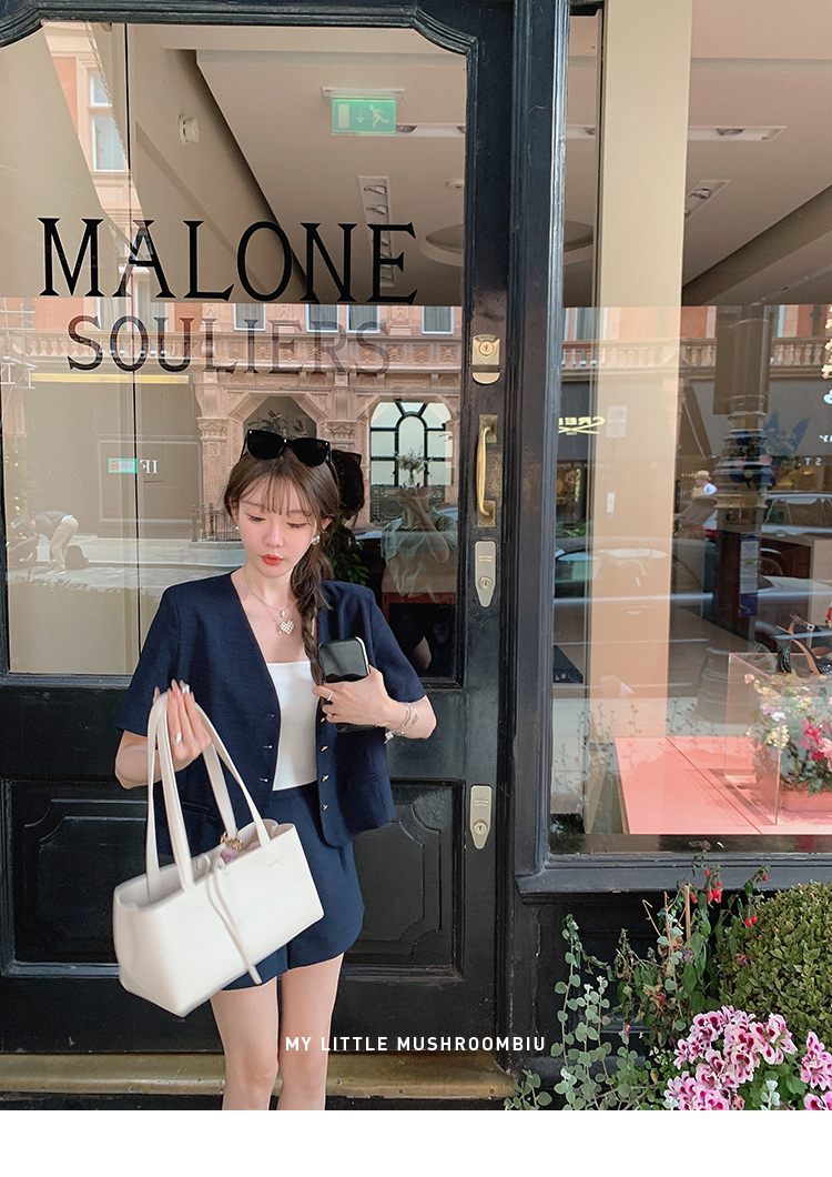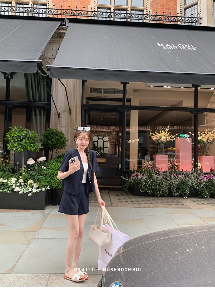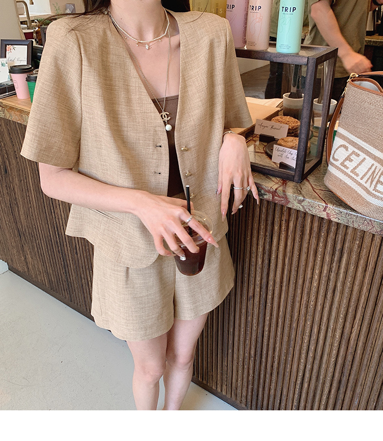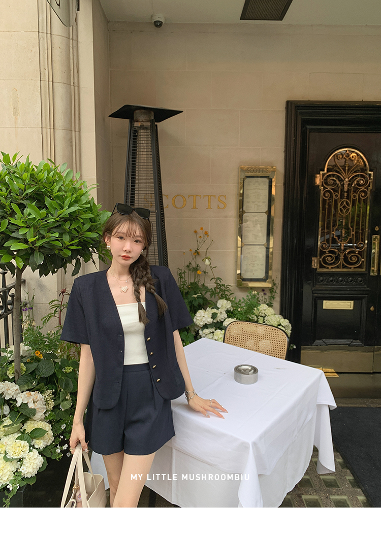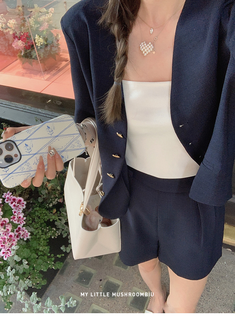 金蘑菇菇 和风旋律 /醋酸棉凉感 短袖西装+短裤通勤两件套