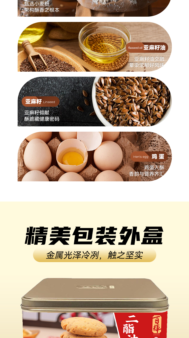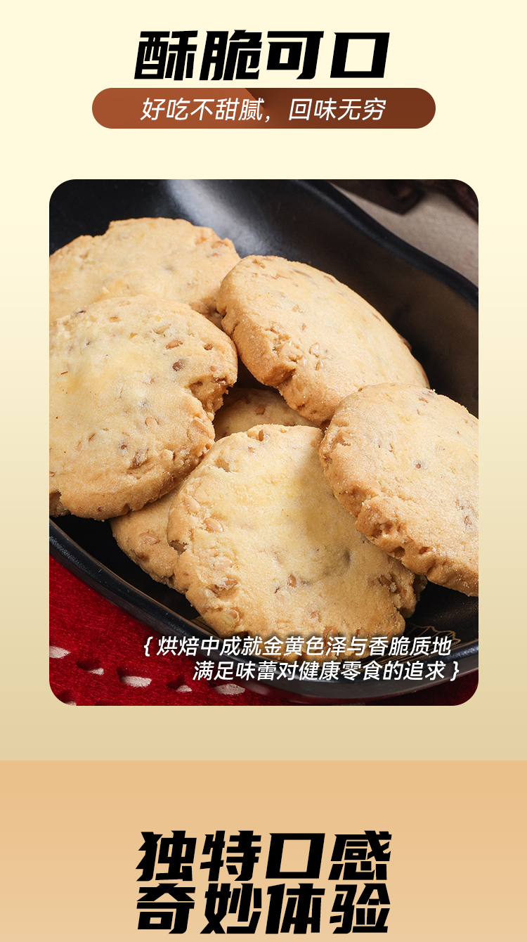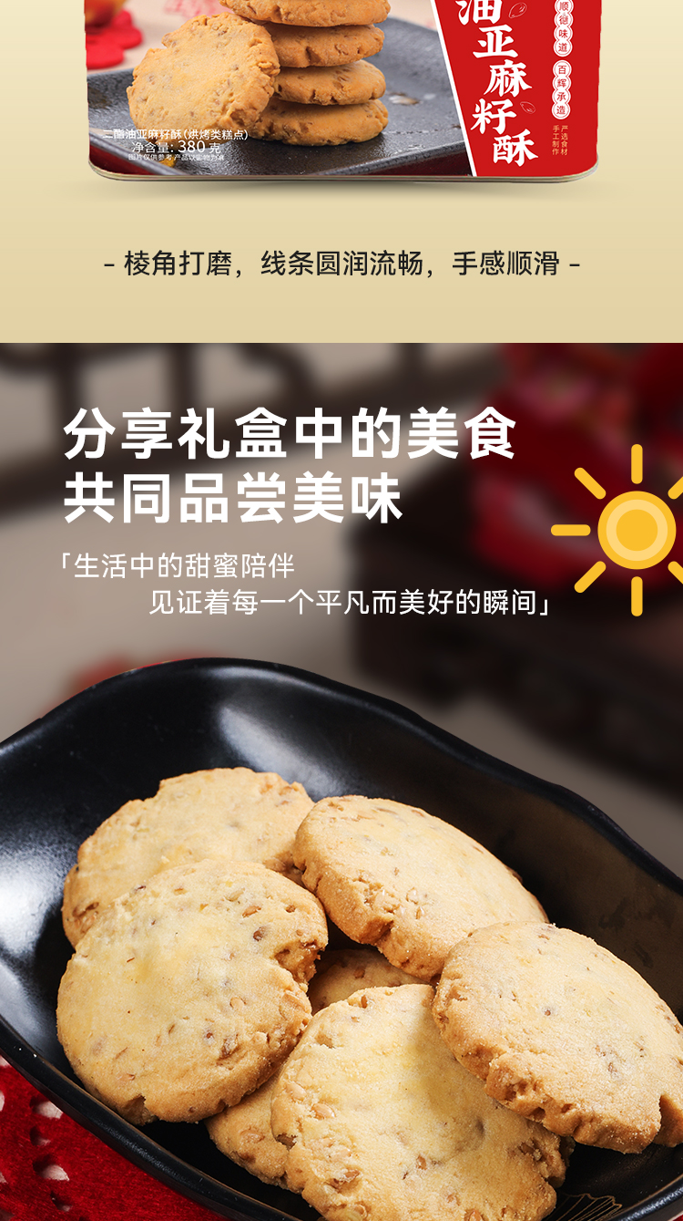 二脂油亚麻籽酥380g 曲奇饼干 进口奶粉 黄油 高纤香脆 满口留香 网红
