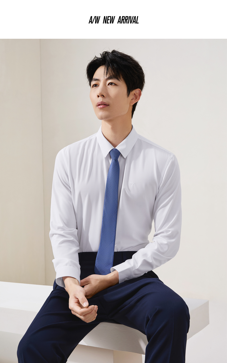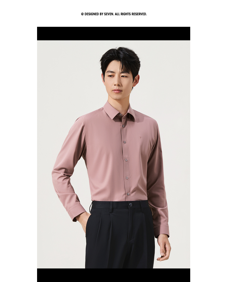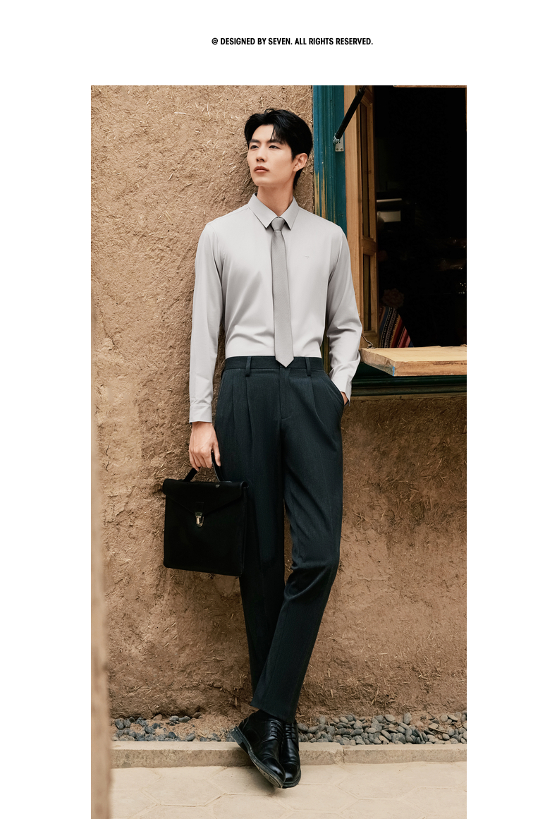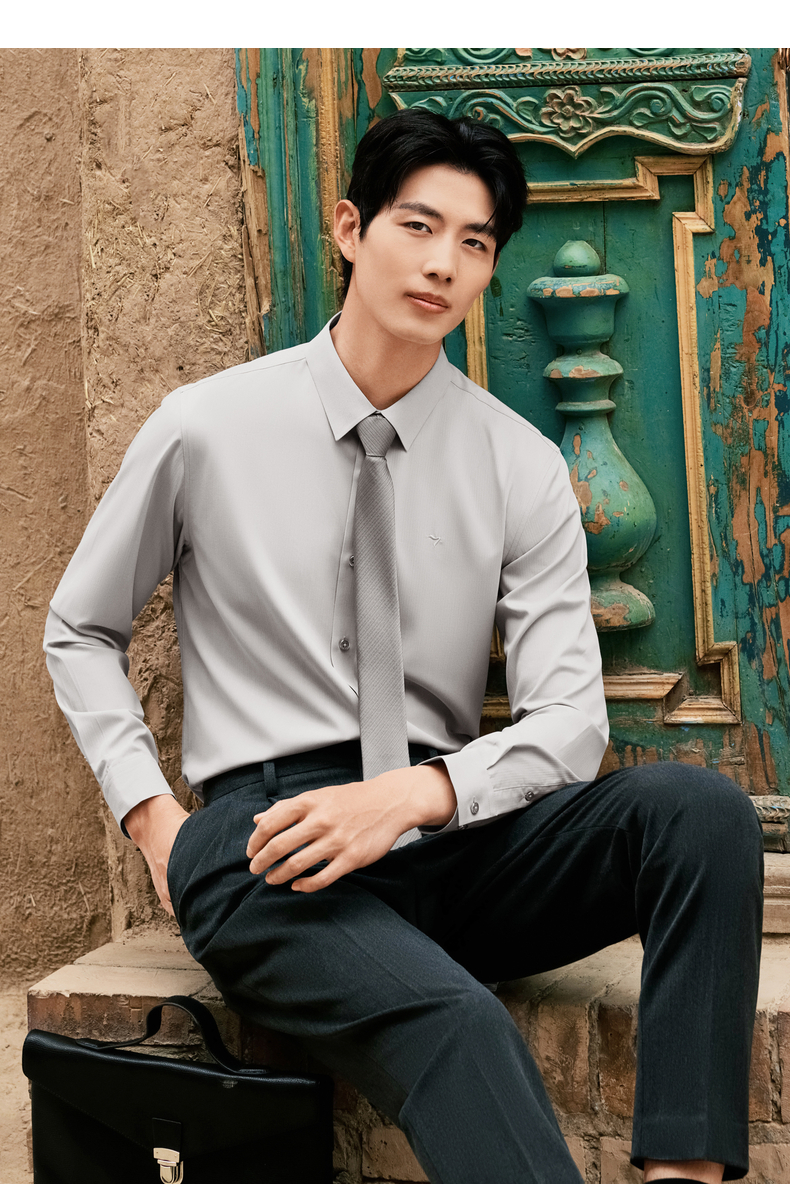 【无缝/胶条衬衫】柒牌翻领长袖衬衫男2025秋季新款暗纹提花衬衣129A70410