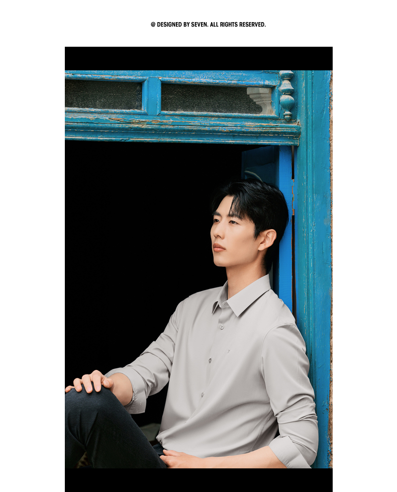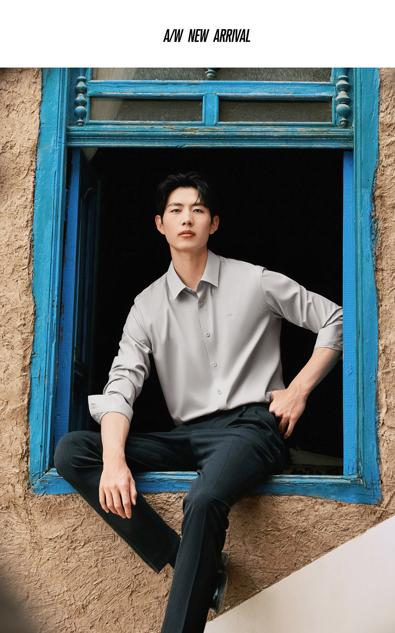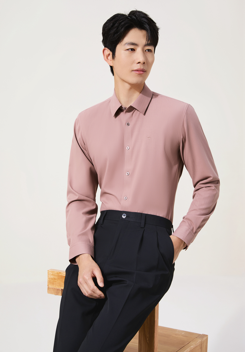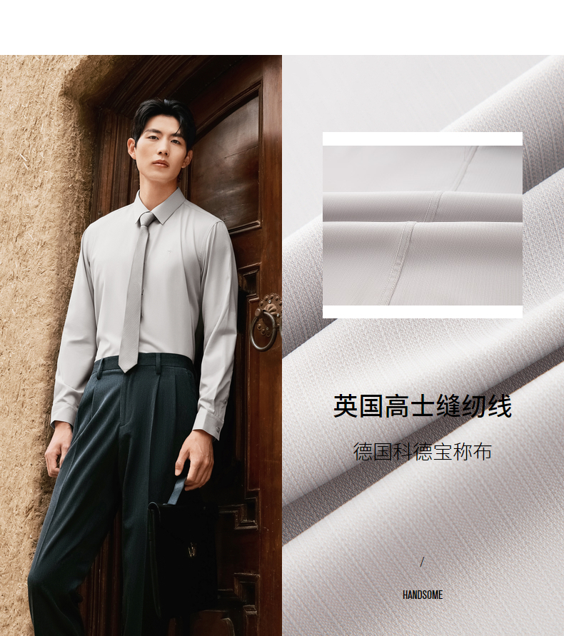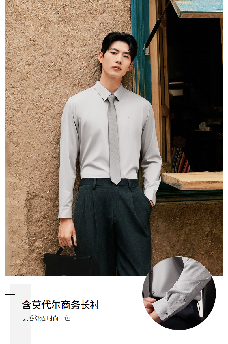 【无缝/胶条衬衫】柒牌翻领长袖衬衫男2025秋季新款暗纹提花衬衣129A70410