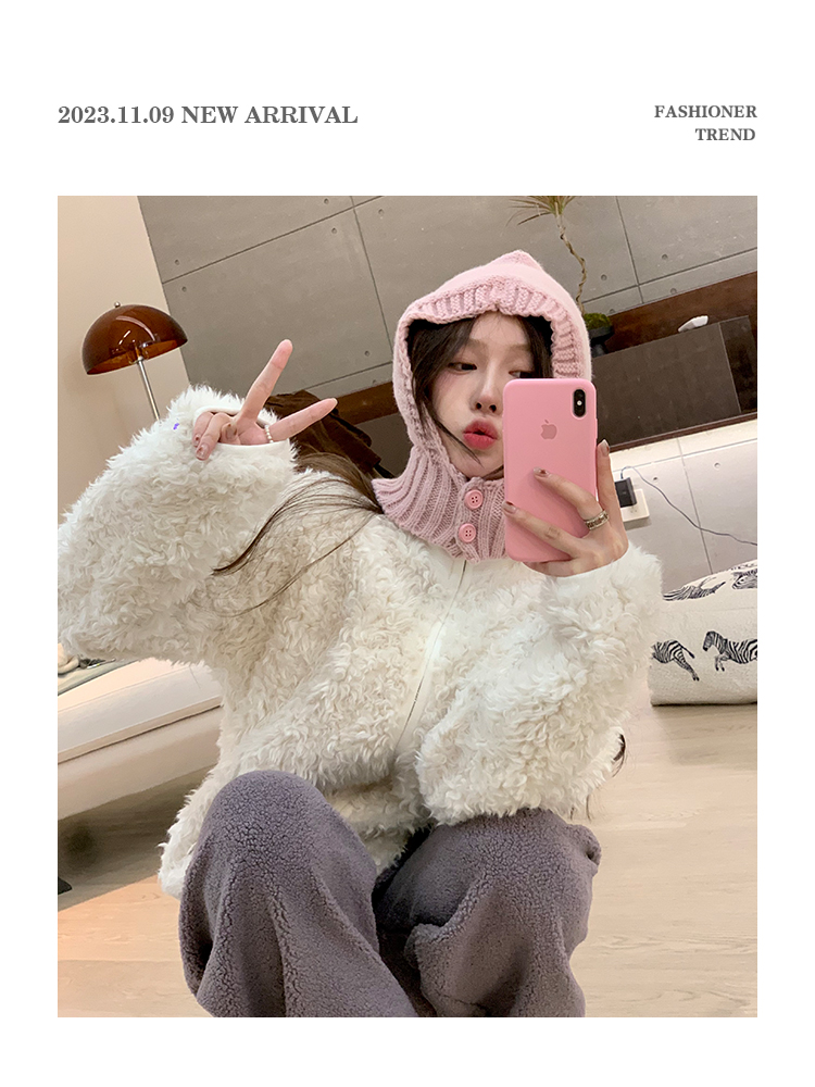 现货贝岛少女 温暖御寒仿羊羔毛外套