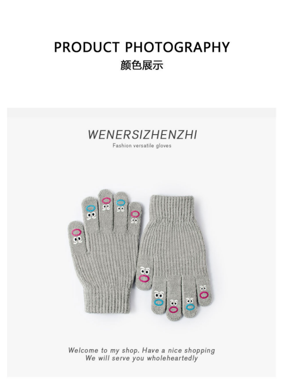 -5色任意选择 - 可触屏款笑脸手套 颜值超级好啊 给妈妈也买 到了冬天 有这么一双漂亮又保暖的手套真的很辛福呀