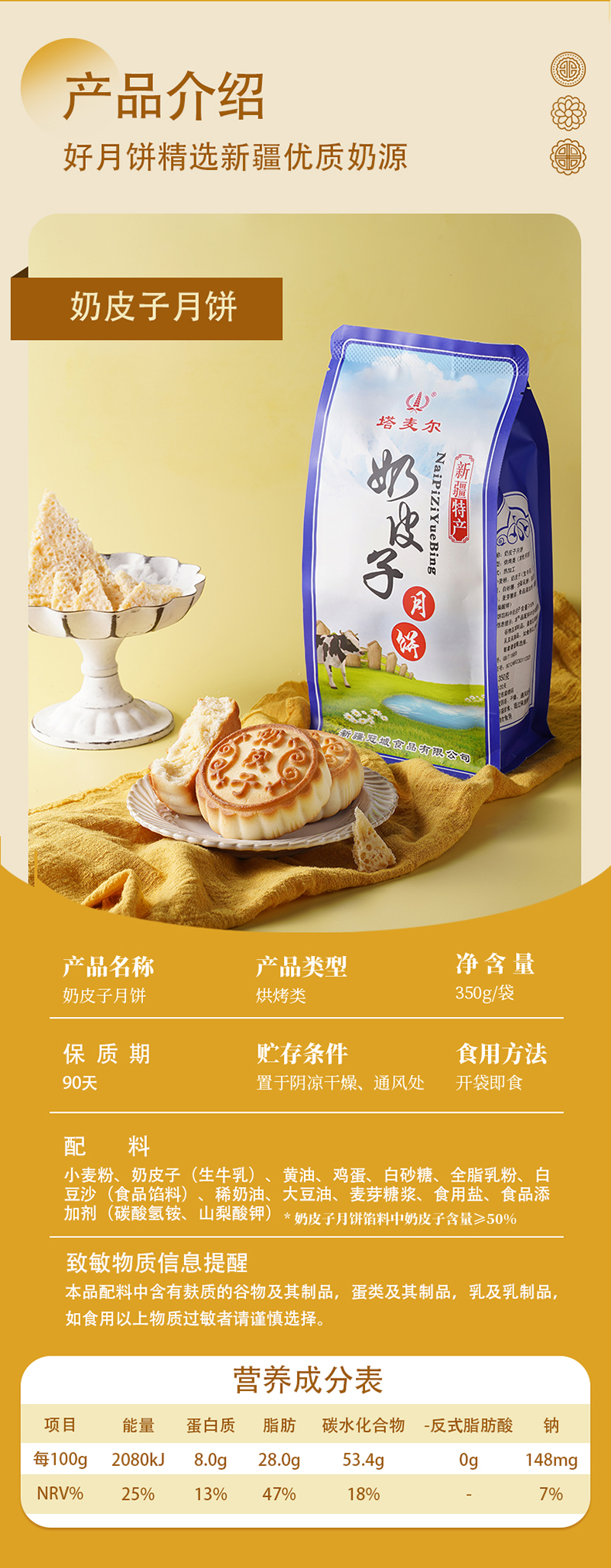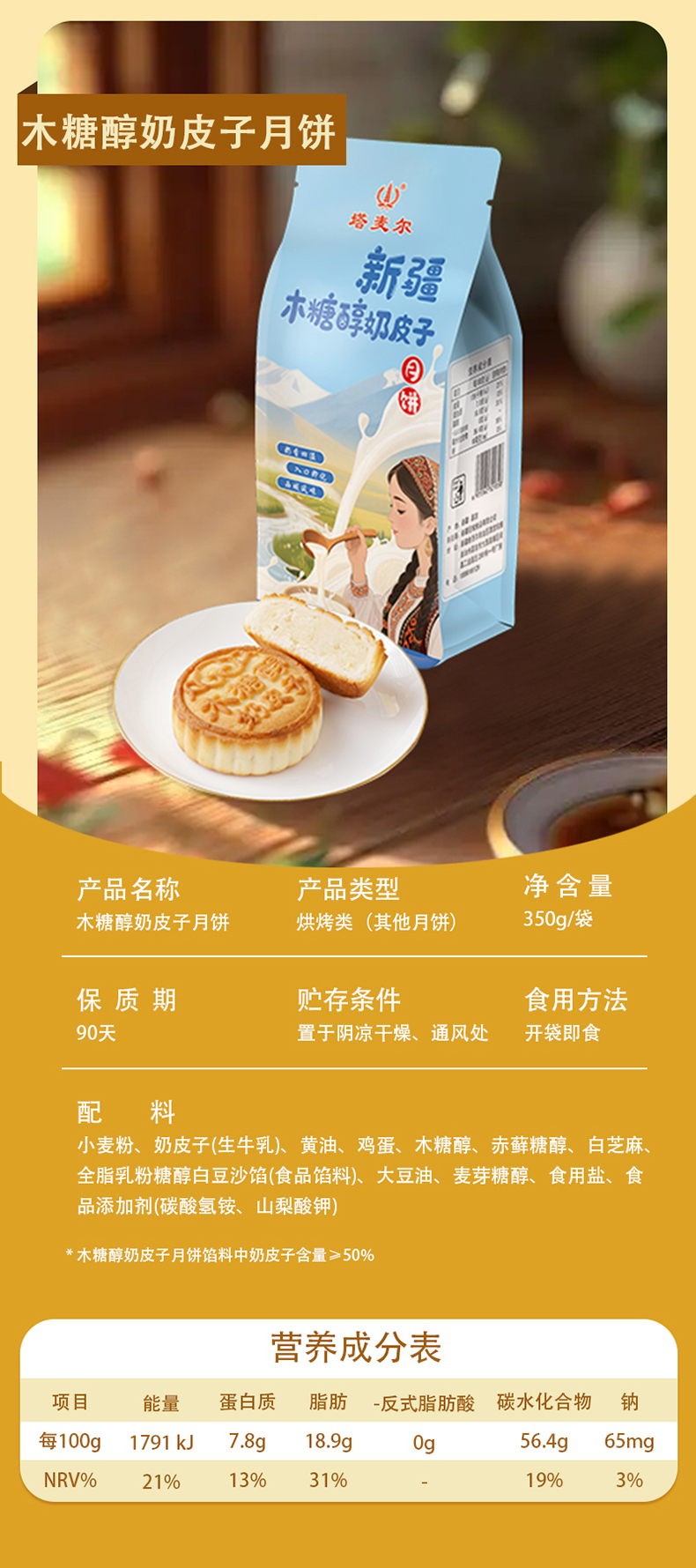 新疆塔麦尔奶月饼 奶香浓郁 软糯酥香 好吃不腻