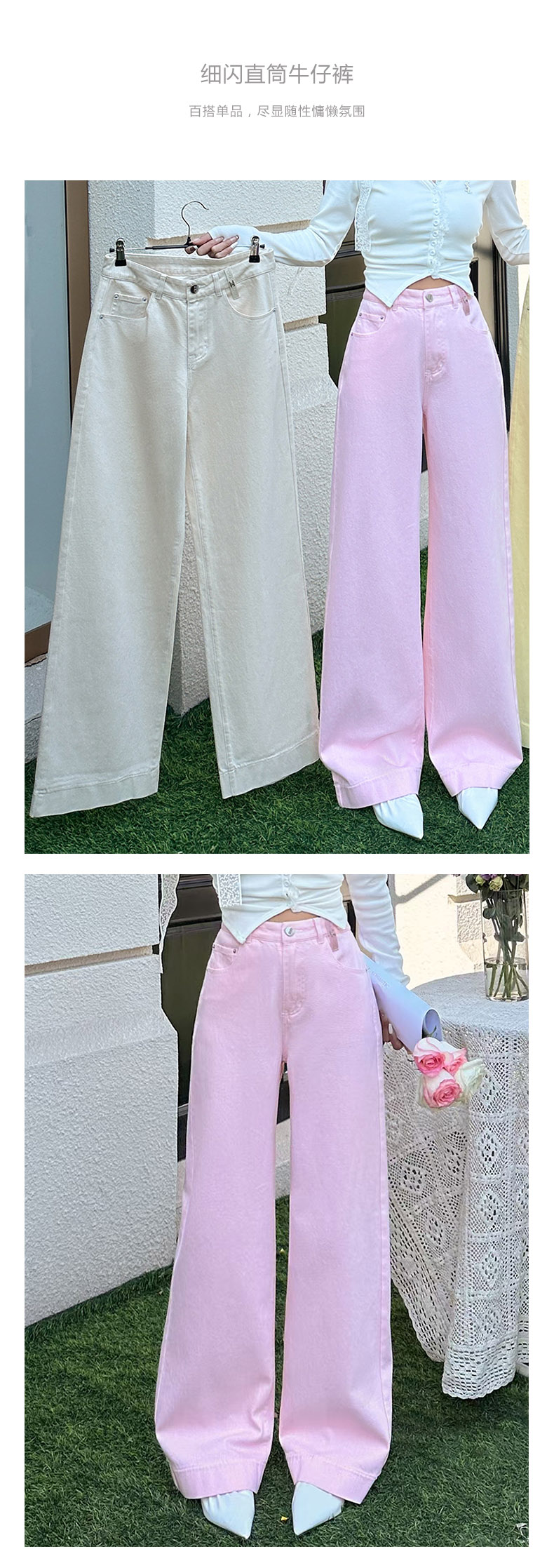 【钰米】秋季新款 洗水棉 细闪 直筒阔腿 牛仔裤 Y5C03N1300
