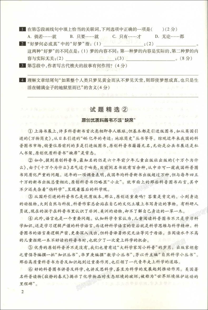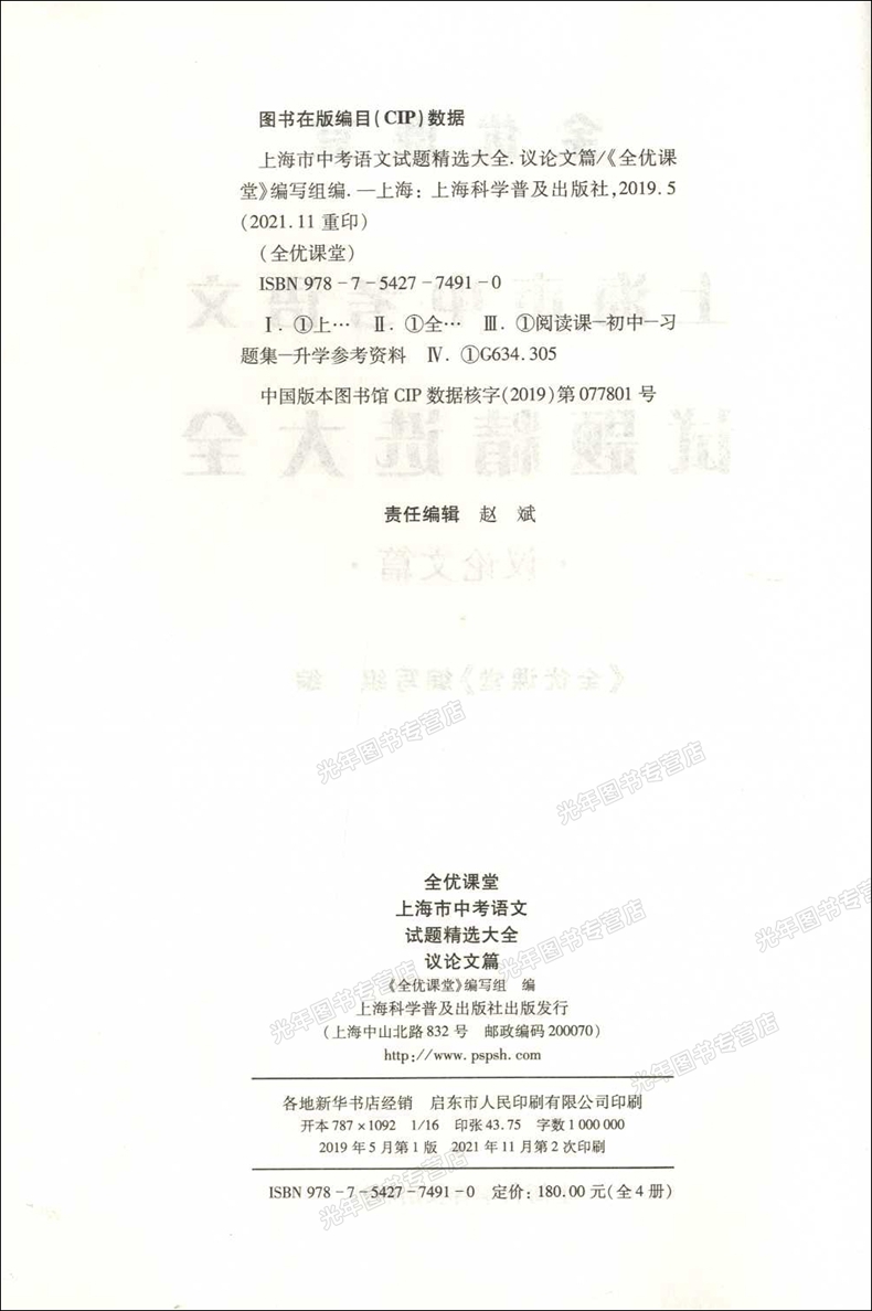 全优课堂 上海市中考语文试题精选大全 议论文篇 上海科学普及出版社 初中生议论文综合应用全真练习试题