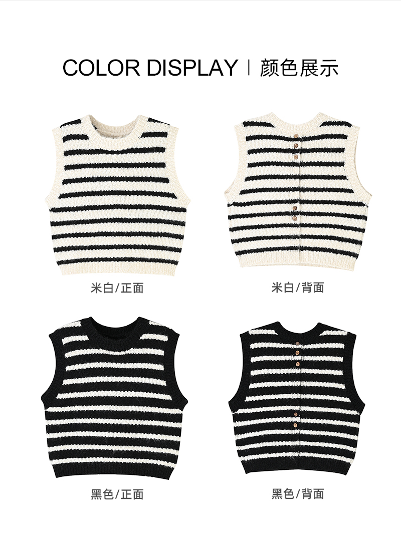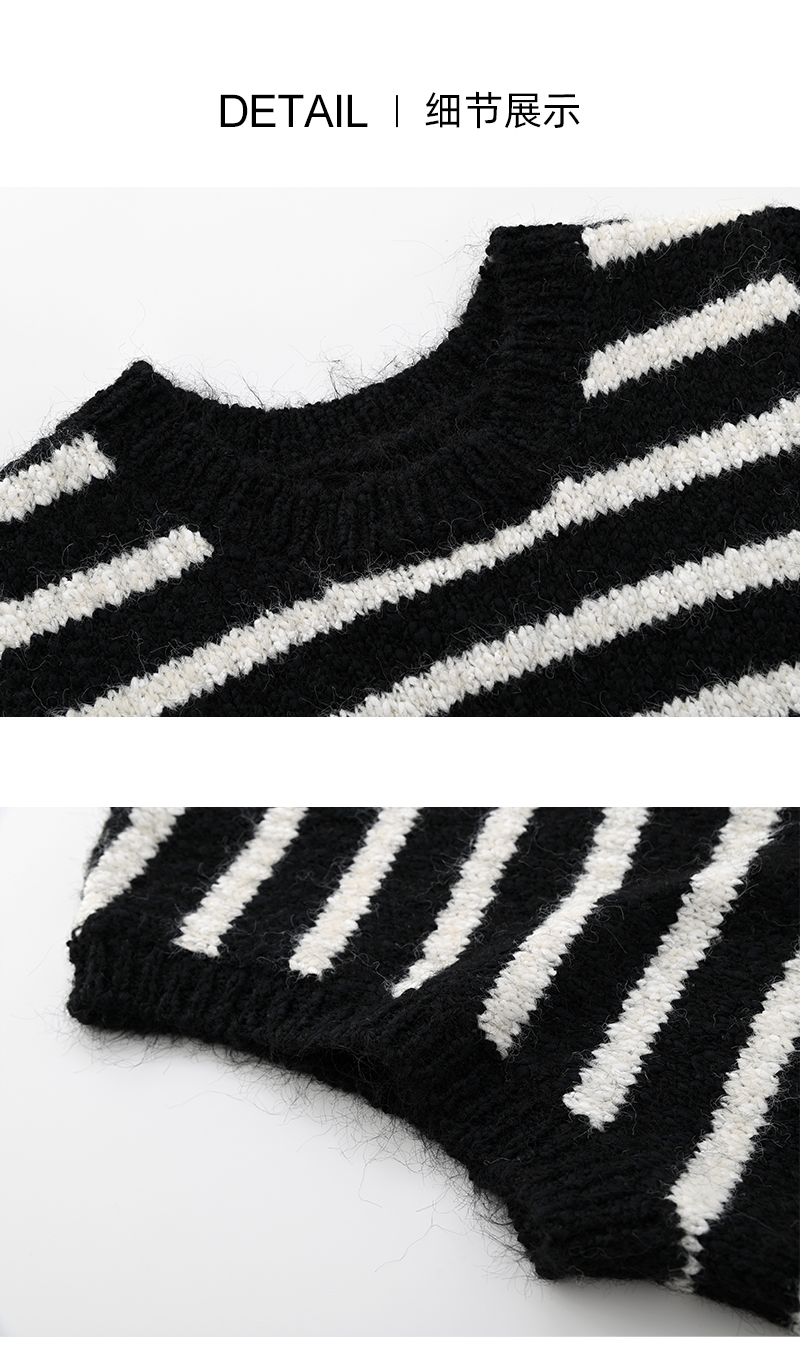 女装圆领粗针条纹韩系毛衣背心-27B5241012