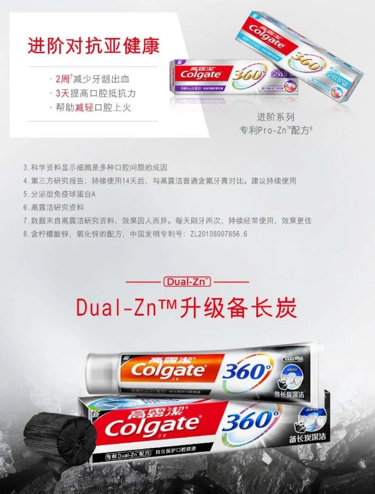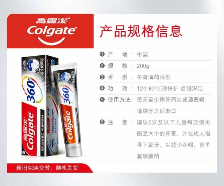 高露洁360°备长炭牙膏冬青薄荷180g