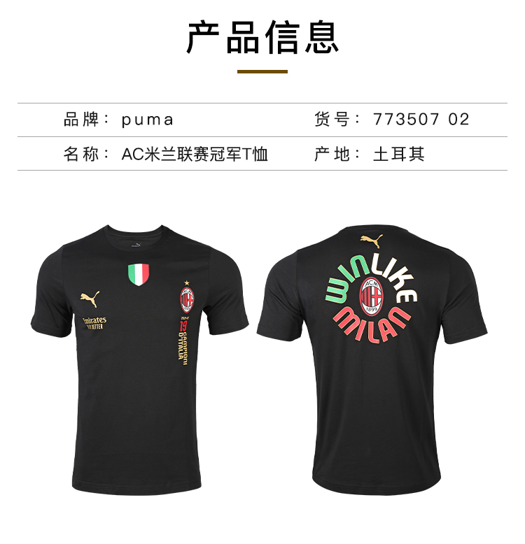 PUMA/彪马ACM Winners Tee Mens21/22 AC米兰联赛冠军T恤77350702