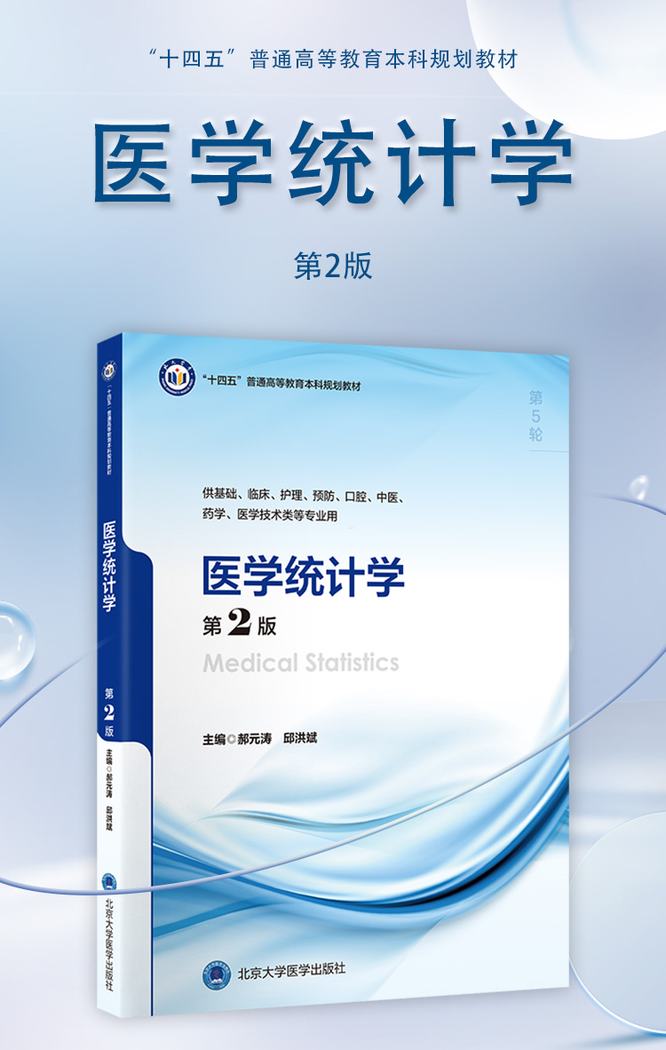医学统计学 第2二版 十四五普通高等教育本科规划教材 郝元涛 邱洪斌 供基础临床护理预防医学技术类等专业用 北京大学医学出版社