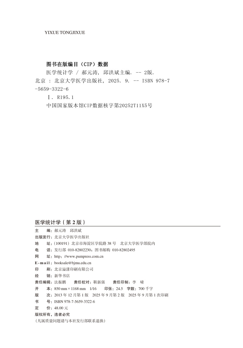 书名:医学统计学(第2版)“十四五”普通高等教育本科规划教材
