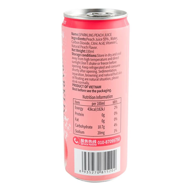 美恩水蜜桃果汁气泡饮料330ml/罐