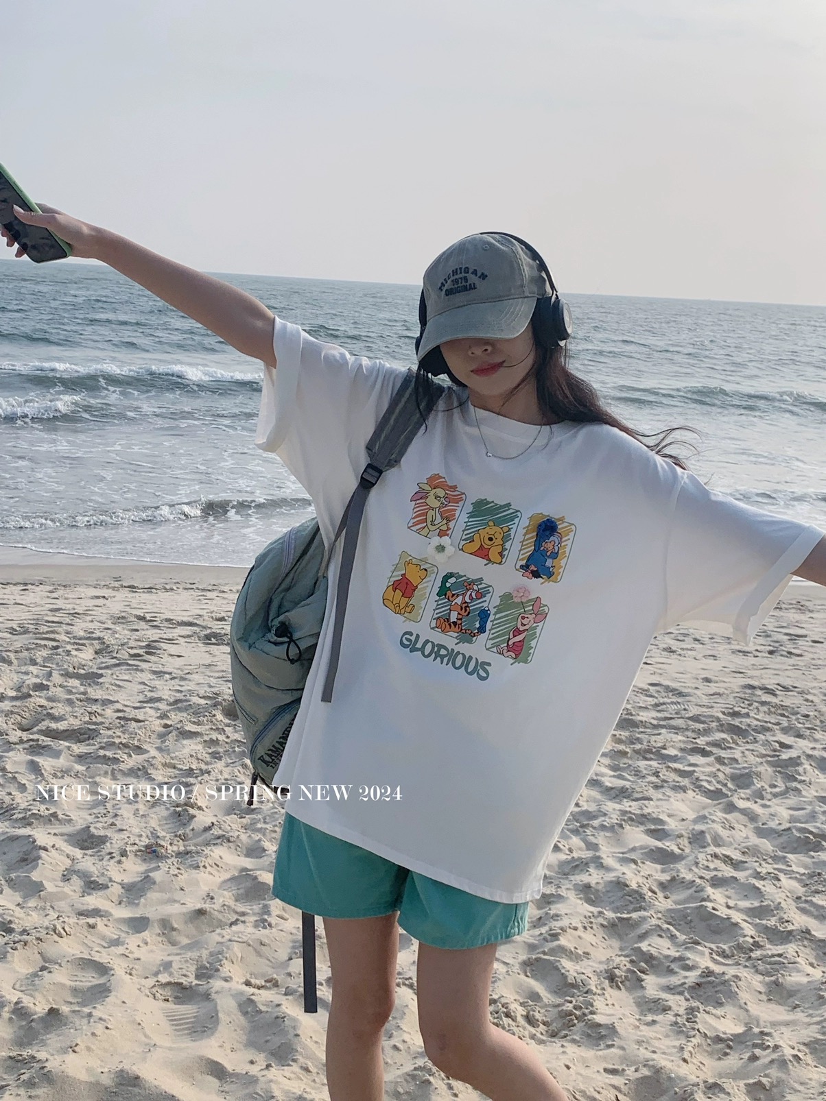 【39.9到手2件】韩国情侣印花T恤丨冰丝凉感 宽松慵懒 男女款T恤