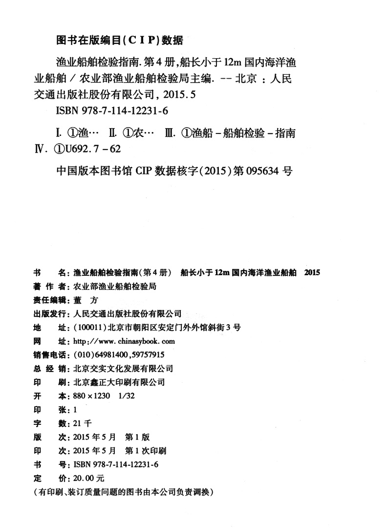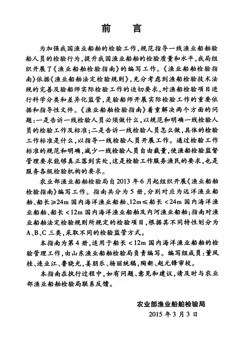书名:渔业船舶检验指南(第4册)船长小于12m国内海洋渔业船舶