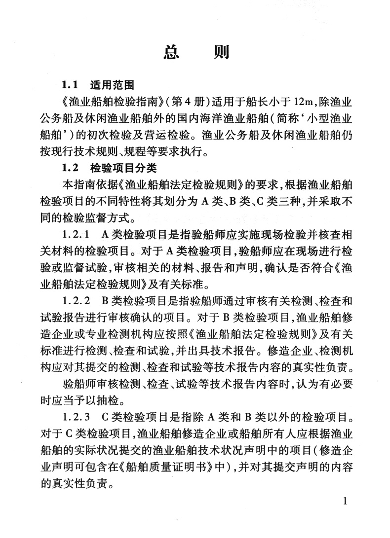 渔业船舶检验指南(第4册)船长小于12m国内海洋渔业船舶