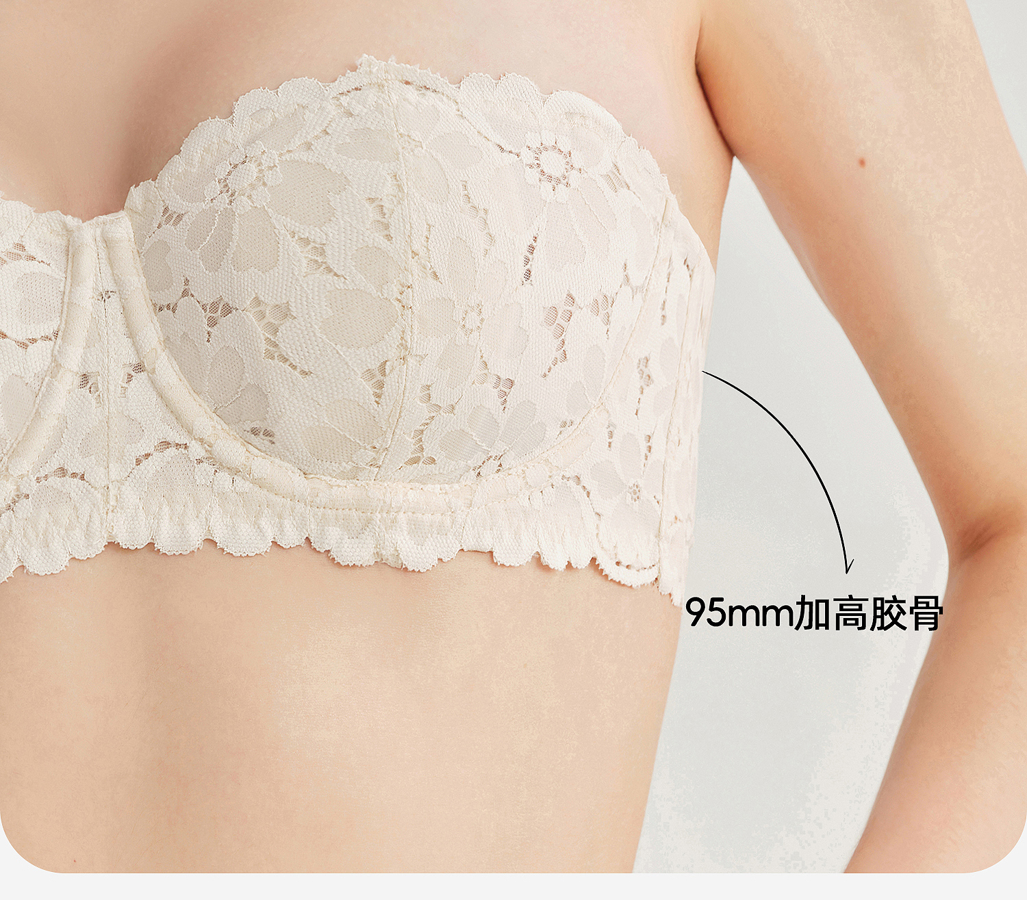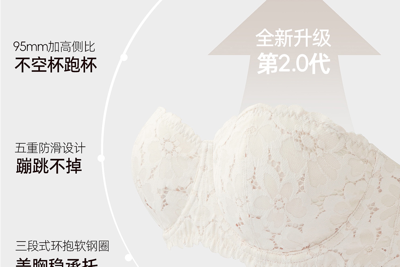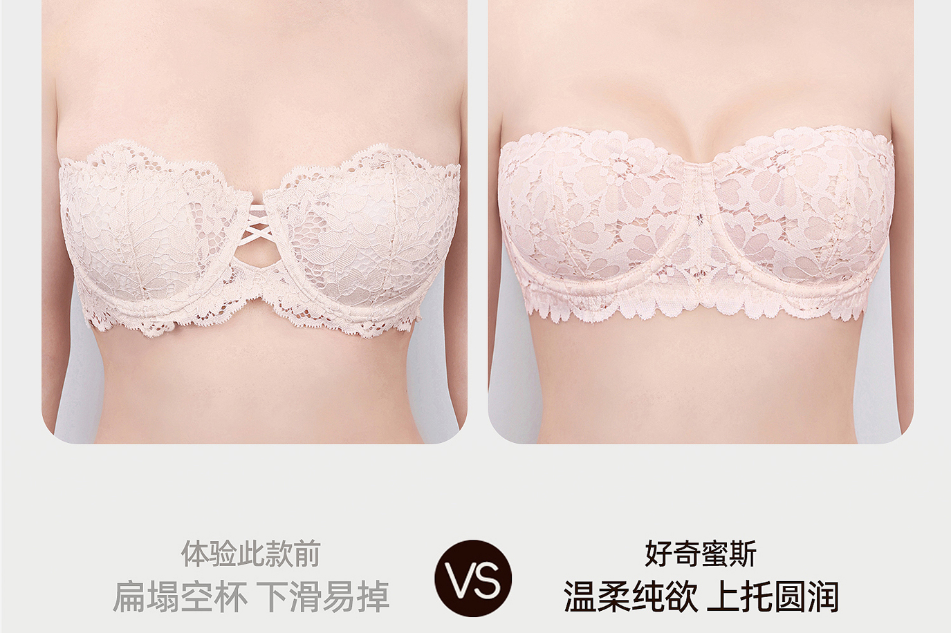 好奇蜜斯抹胸无肩带内衣女夏季薄款大胸显小胸罩文胸套装裹胸性感 朱恩