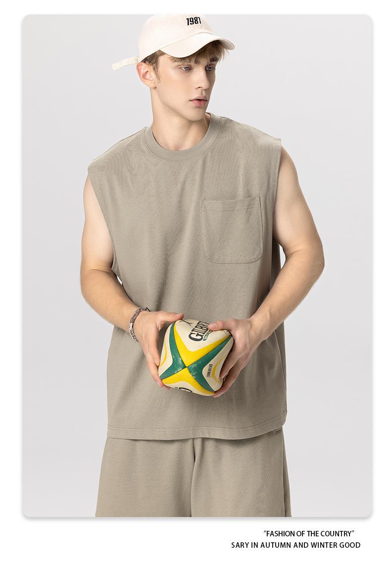 RS男装|2023夏季310g重磅品质纯棉纯色背心欧美潮牌街头男女无袖t
