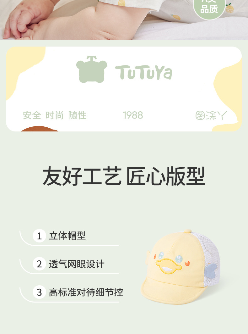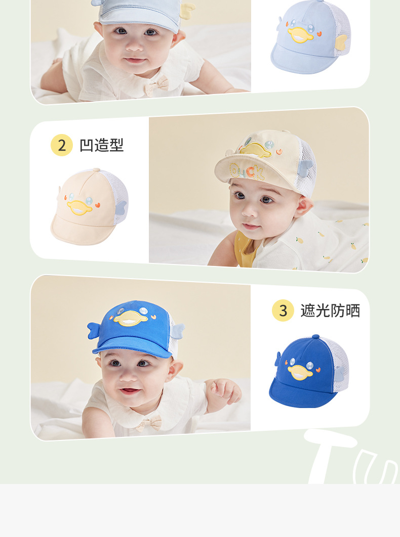 【棉感亲肤❗️宠爱宝宝肌】图涂丫婴儿帽子夏季薄款0到3个月宝宝鸭舌帽夏季男女小月龄遮阳帽。ya