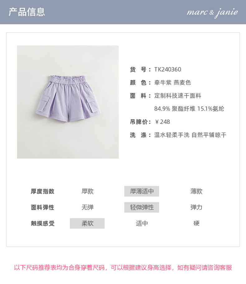 【超轻速干】马克珍妮女童立体口袋工装短裤2024年夏装新款240360