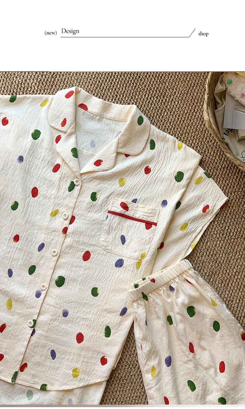 可人儿小众设计师新款泡泡绵女士睡衣夏季短袖可外出家居服三件套