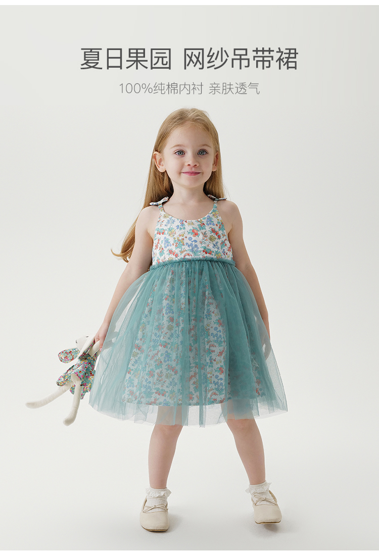 【马克珍妮 芦芙】新款夏装 女童网纱蝴蝶结吊带连衣裙230956