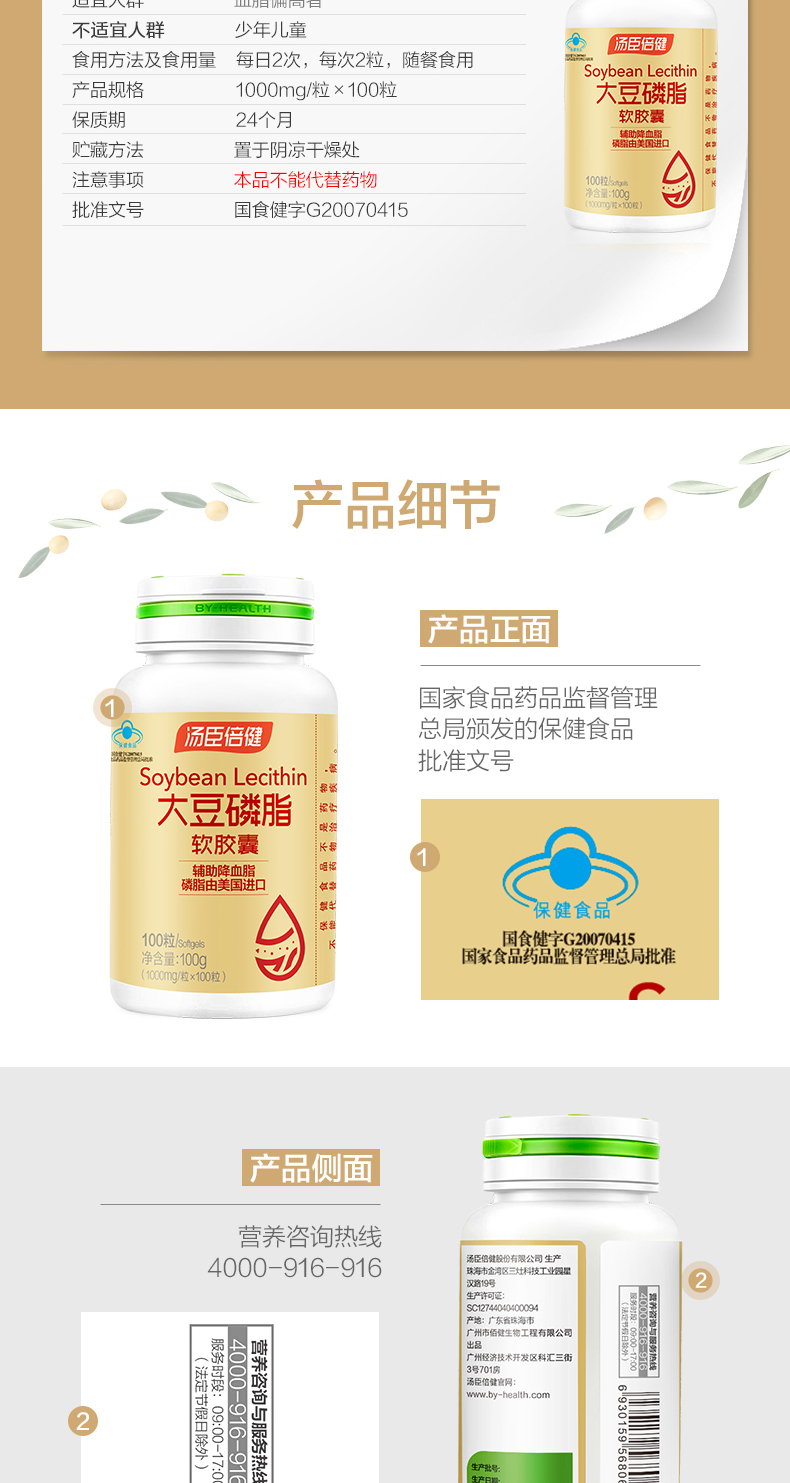 【官方正品】汤臣倍健大豆磷脂240粒辅助降血脂
